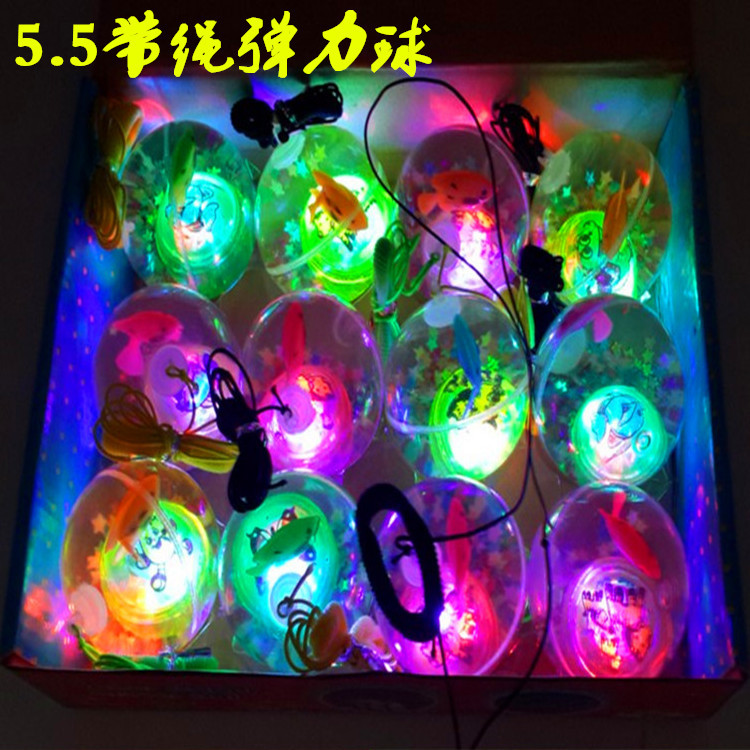 Ribbon bouncing ball luminous butterfly toy ball 5.5cm flash jump crystal ball stall toy hot sale