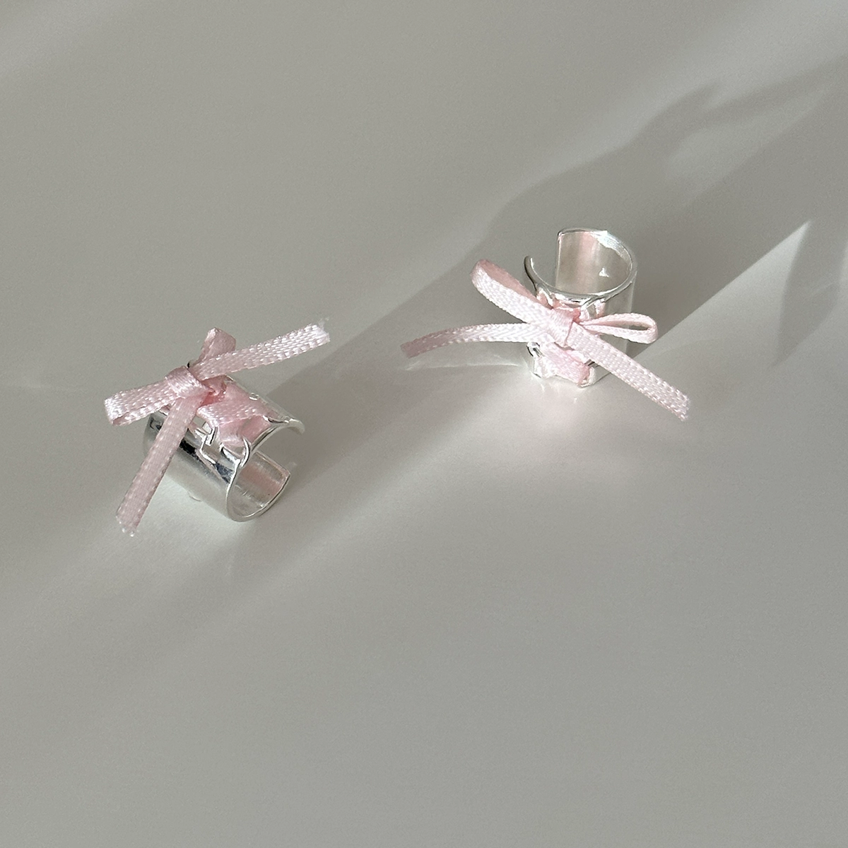 Ribbon bow ear clip without pierced earrings niche unique design ear bone ring sweet temperament Korean style earrings for women