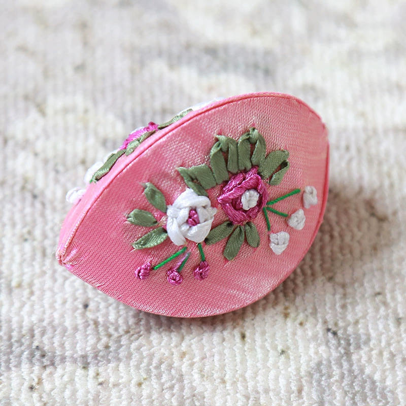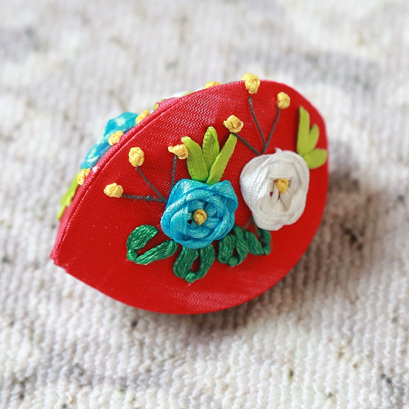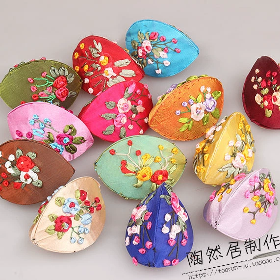 Ribbon embroidered open smile mini portable dumpling-shaped embroidered jewelry box storage box coin coin purse small storage bag