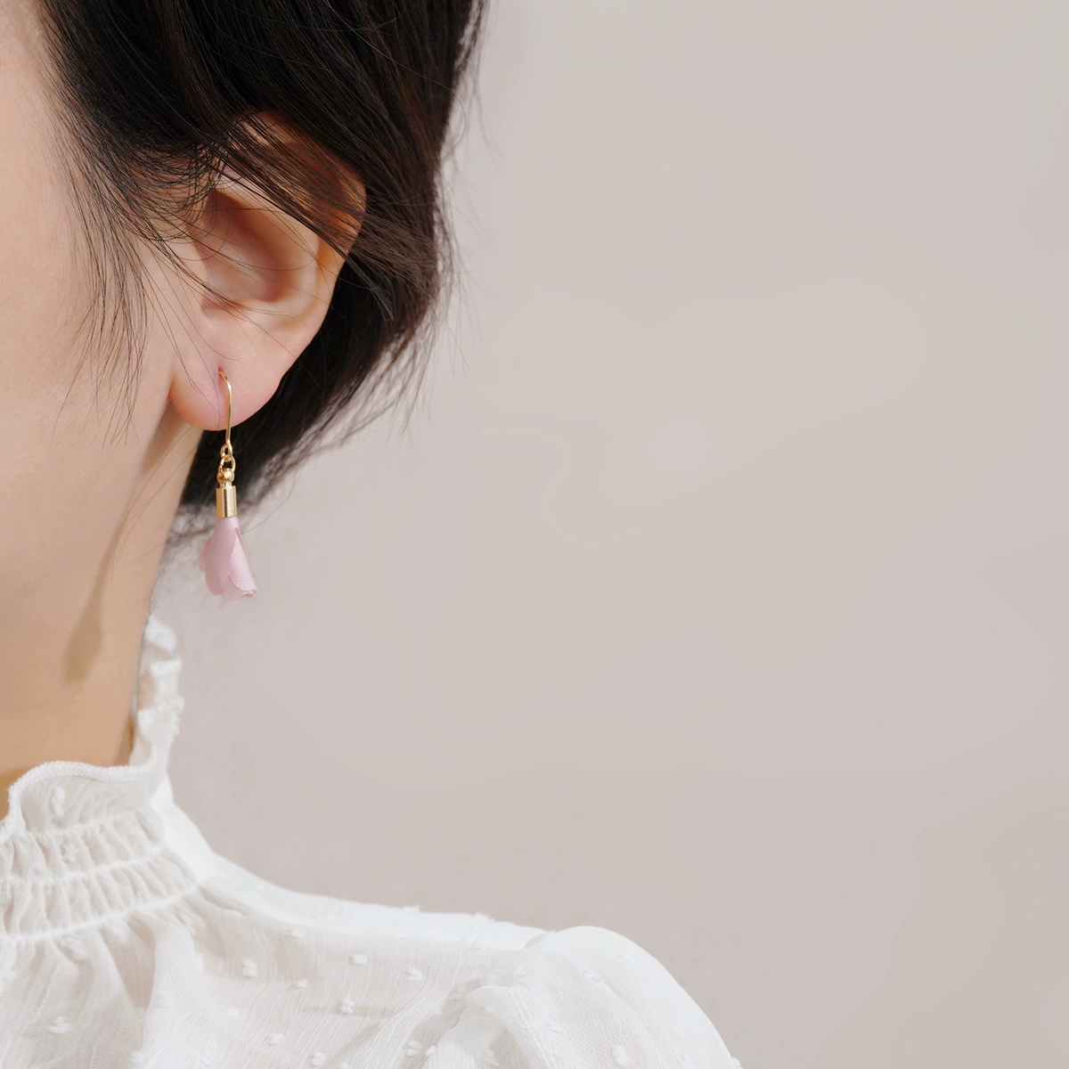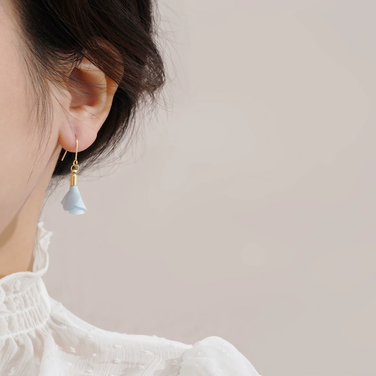 | nameOriginal | Ribbon fabric small flower earrings women's magnolia short earrings gentle style small earrings 2024 new trend |