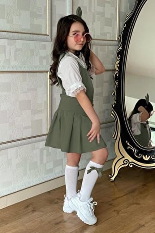 Girls' Lace Embroidered Short Sleeve Shirt 4pcs Khaki JileProduct information: 80% cotton, short sleeve shirt with button front with lace detail on the collar and sleeves. Double pocket detailing front, pleated skirt and button detailing straps. Includes a pair of socks and tiara. A total of four pieces: shirt, jile, socks and crown. SHIRT 3-4 years 4-5 years 5-6 years 6-7 years 7-8 years 9-10 years 11-12 years HEIGHT 34 cm 37 cm 40 cm 43 cm 46 cm 49 cm 52 cm WAIST 31 cm 32 cm 33 cm 34 cm 35 cm 36 cm 37 cm JILE 3-4 years 4-5 years 5-6 years 6-7 years 7-8 years 9-10 years 11-12 years HEIGHT 57 cm 59 cm 61 cm 63 cm 65 cm 67 cm 69 cm WAIST 31 cm 32 cm 33 cm 34 cm 35 cm 36 cm 37 cm Riccotarz General Information -For Children's Clothing Products The right care and storage conditions allow you to use products made from the highest quality fabrics for a longer period of time. -Please take care to wash the Children's Clothing Products by turning over and with your own color group, not to stay wet for a long time. -When washing and ironing Children's Clothing Products, you should take care of the information in the instruction manual. -If there are highlighter printing, accessories and or embroidery, on Children's Clothing Products