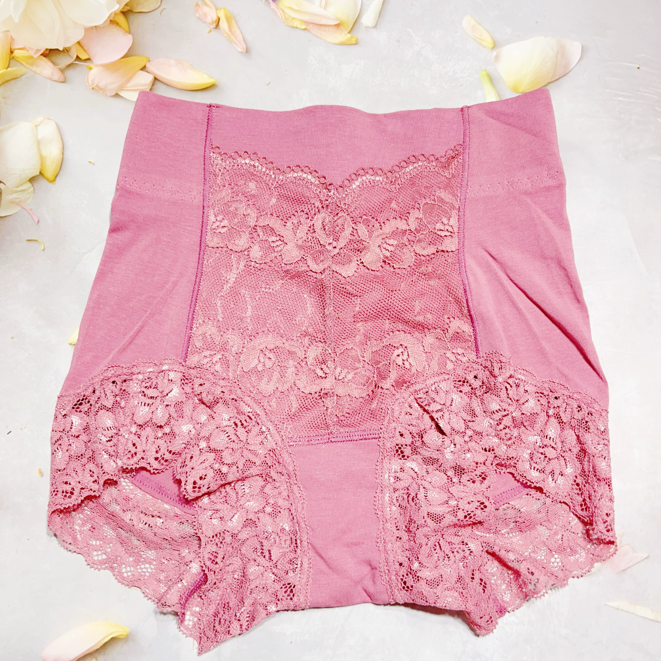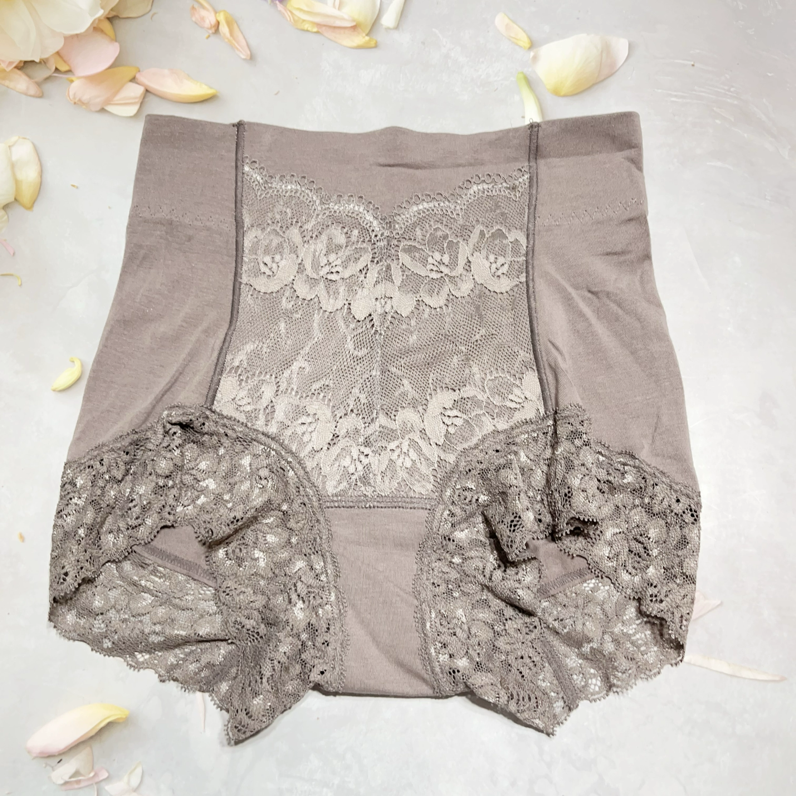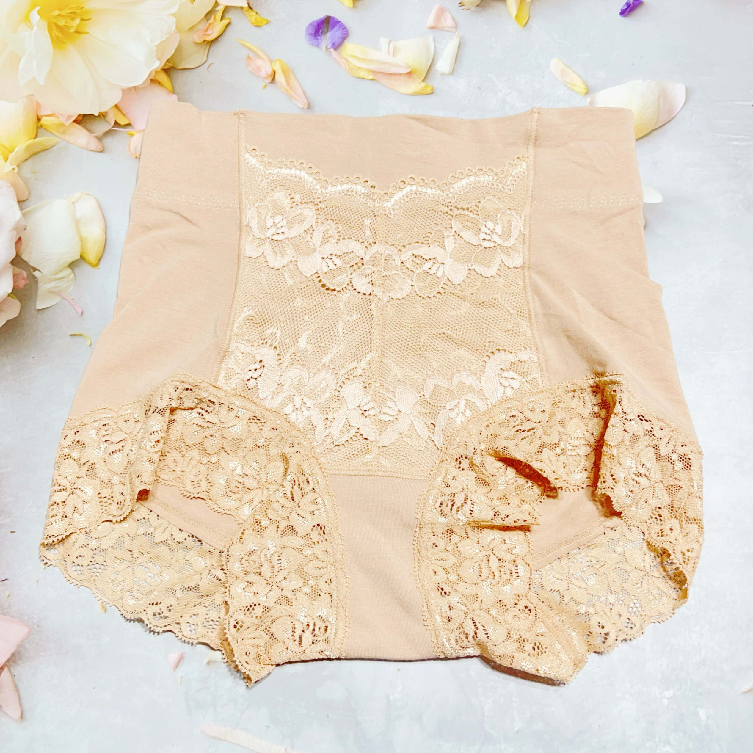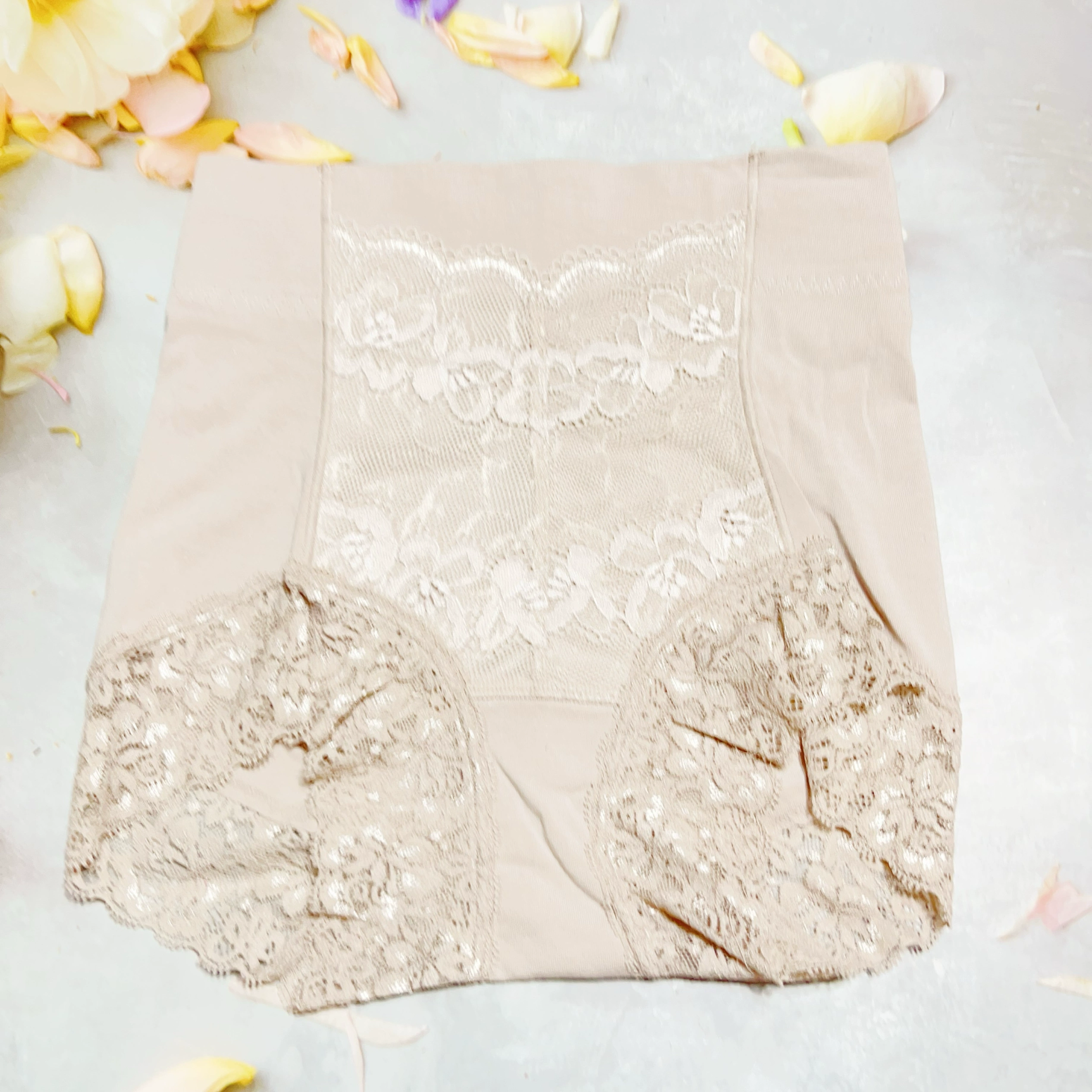 Ridanqian QU will gently press the belly, waist and butt lift cotton mid-high waist sexy lace skin color black women's triangle underwear