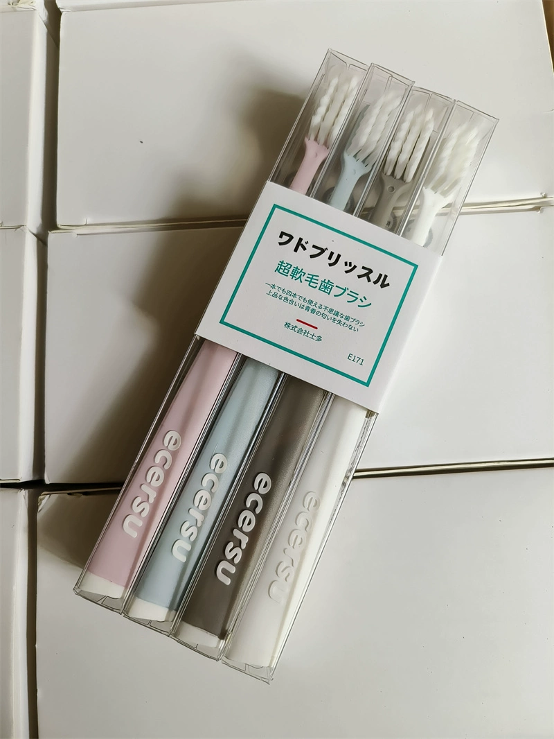 (Right-necessary) Adult household individually packaged fine soft-bristle manual antibacterial cleaning four-pack family toothbrush