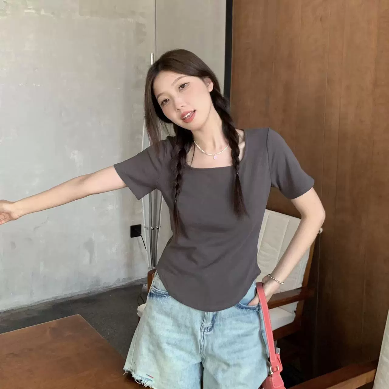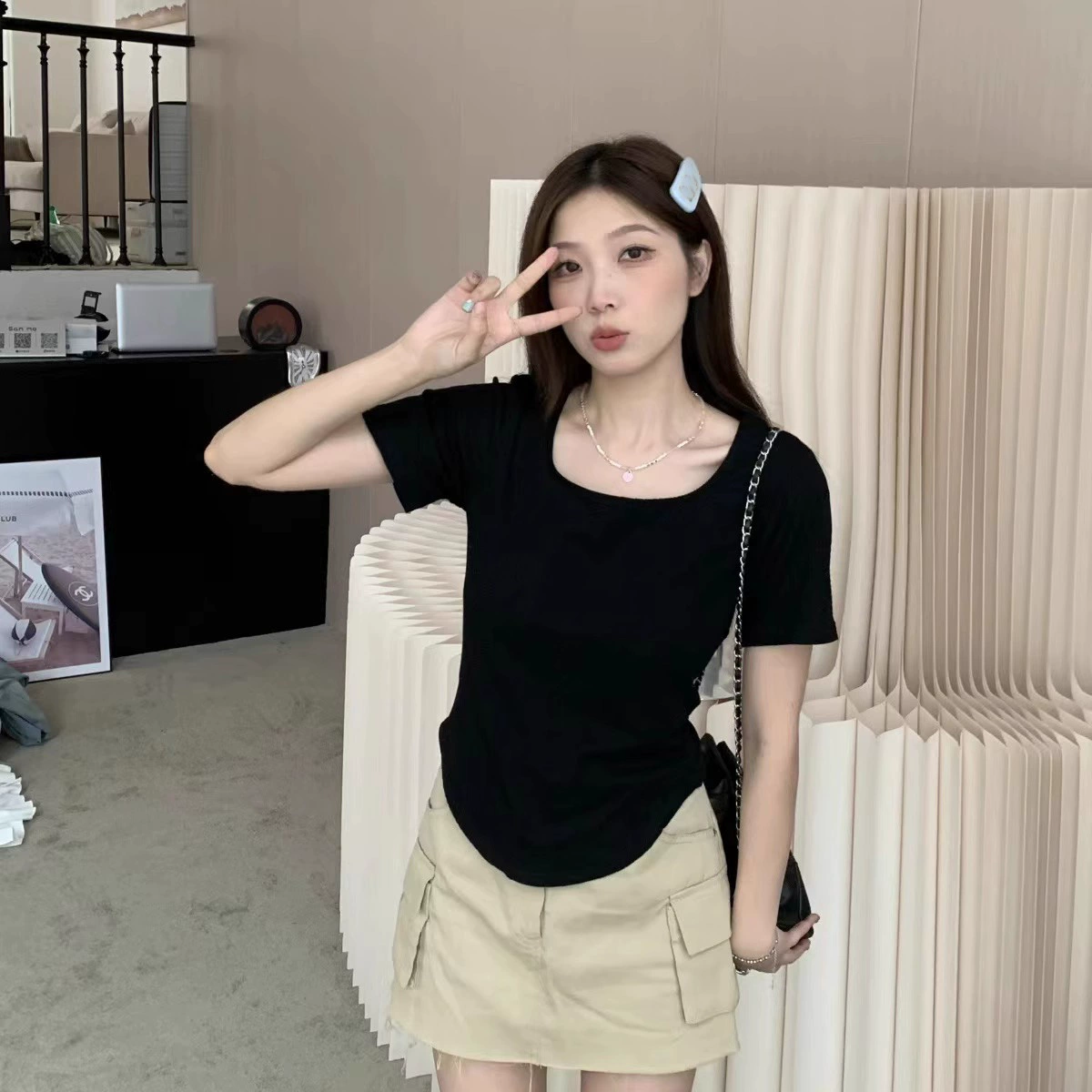 | nameOriginal | Right shoulder 2024 new summer slimming short-sleeved T-shirt |