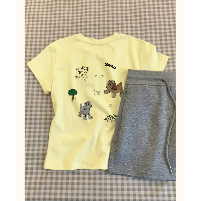 | nameOriginal | Right shoulder bright yellow polka dot women's suit round neck short-sleeved T-shirt |