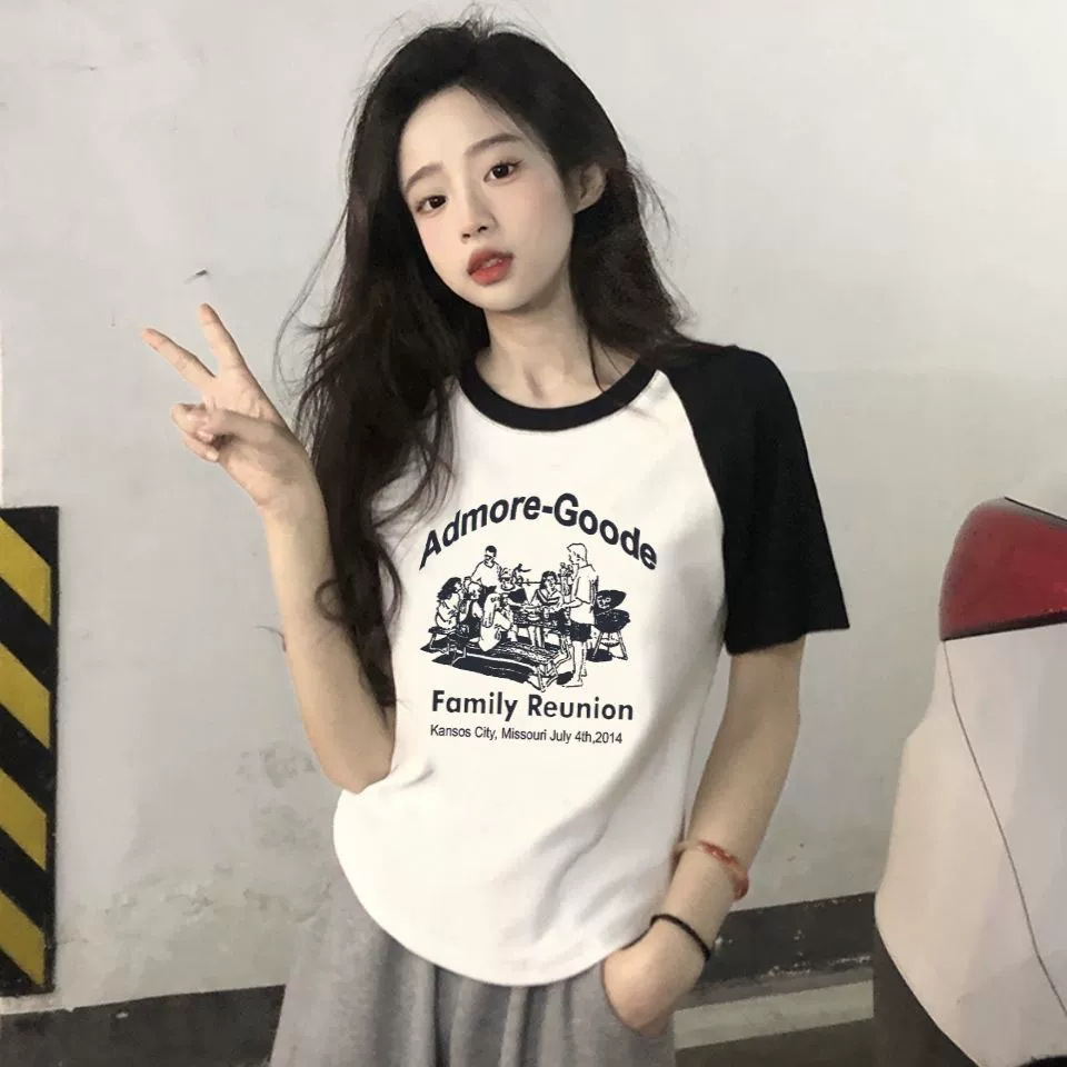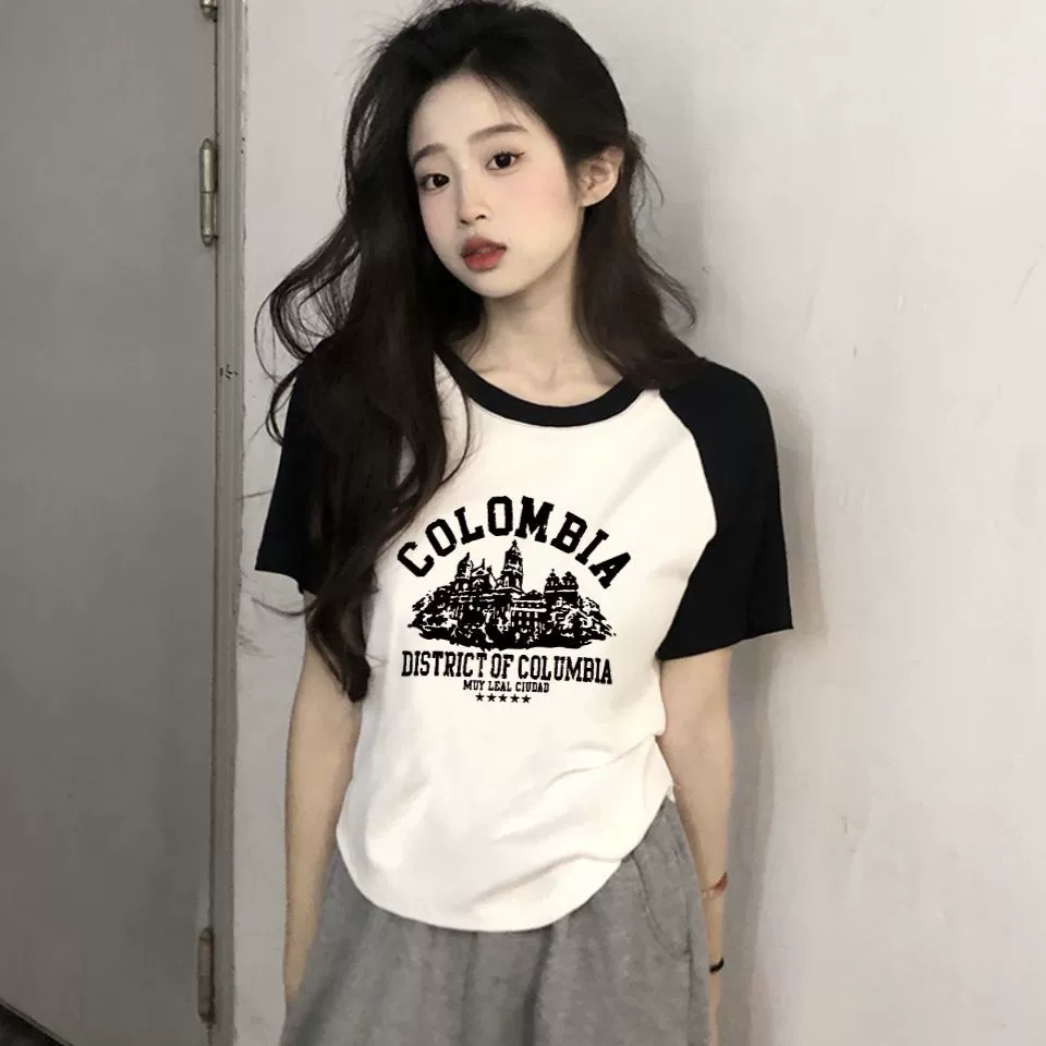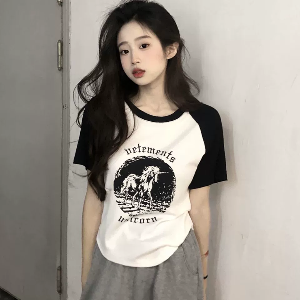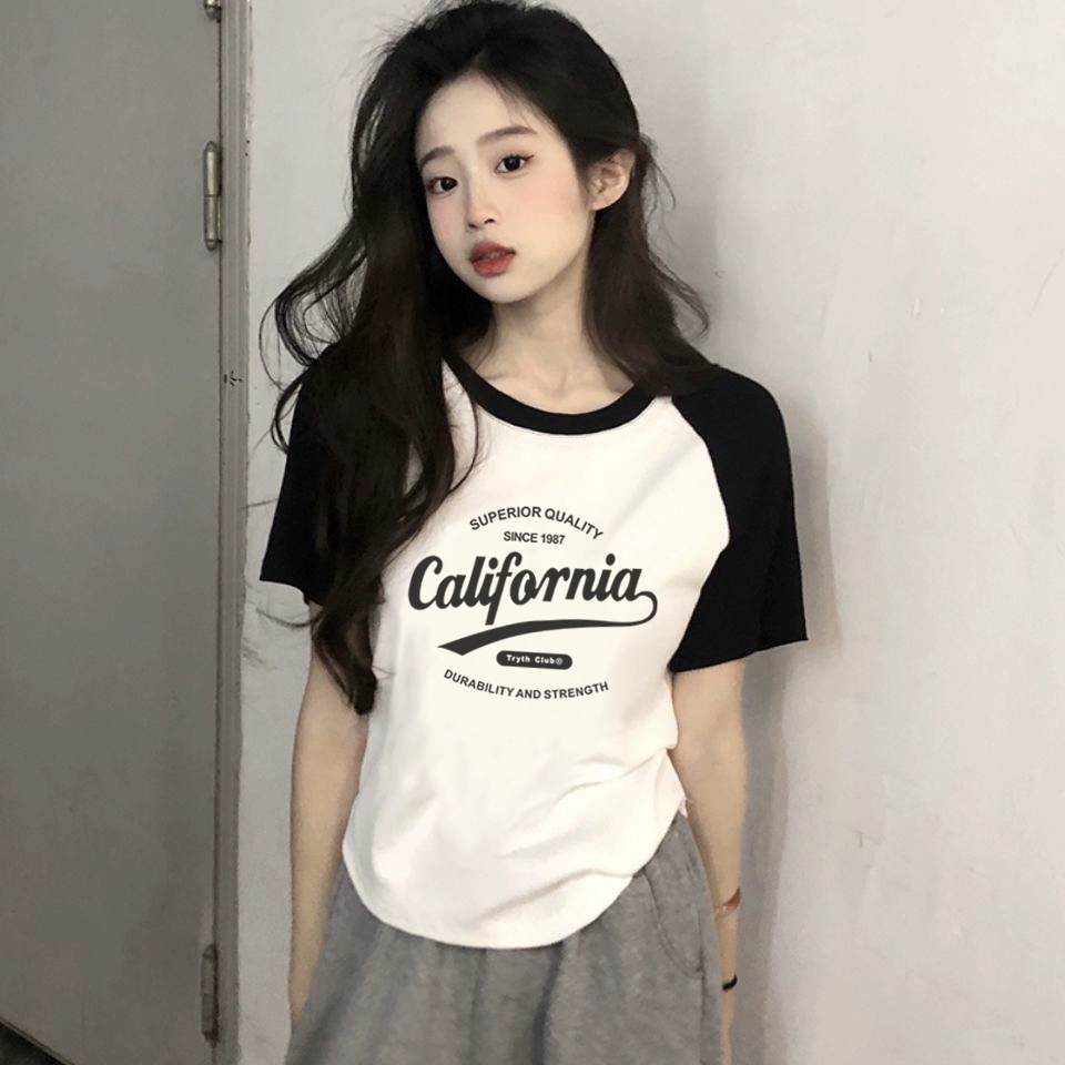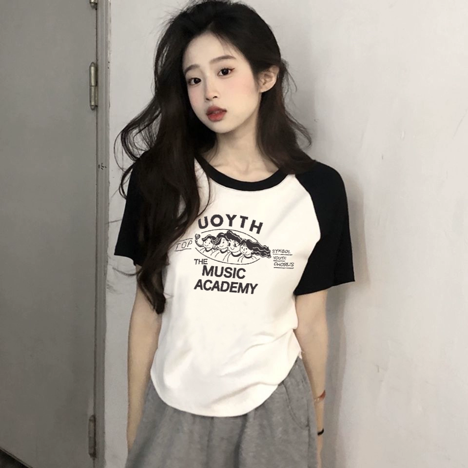 Right shoulder cotton T-shirt slim fit summer top short sleeves