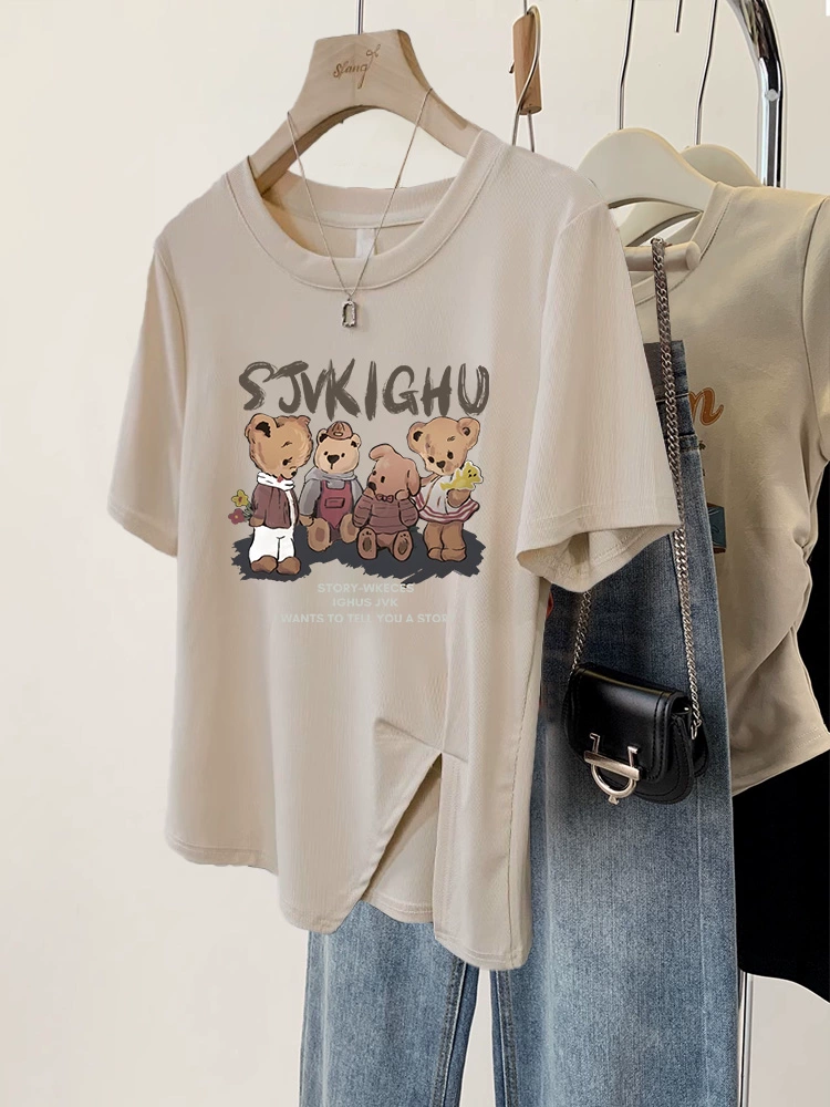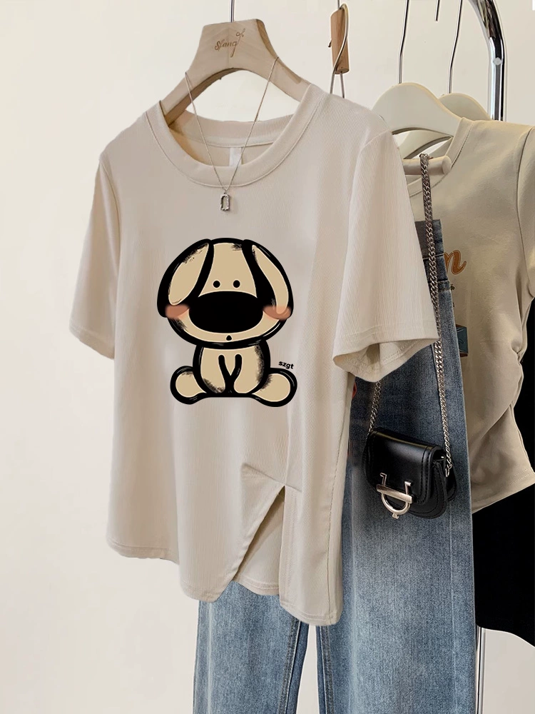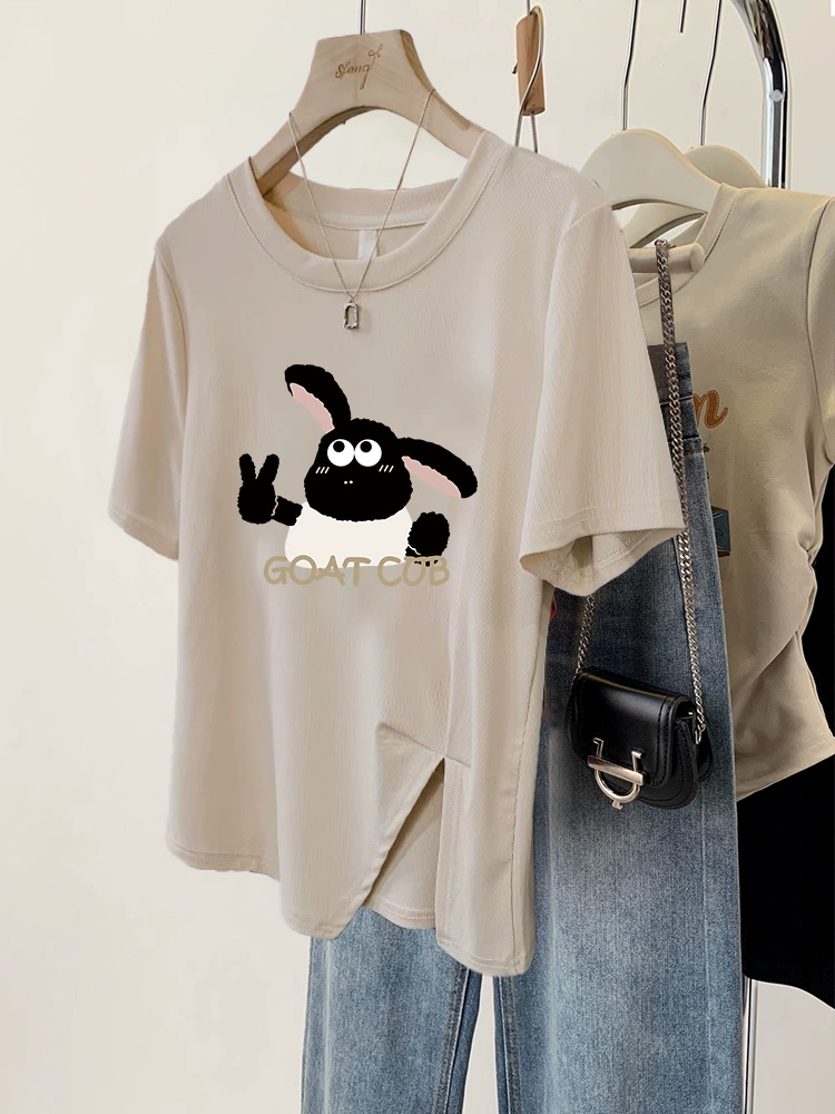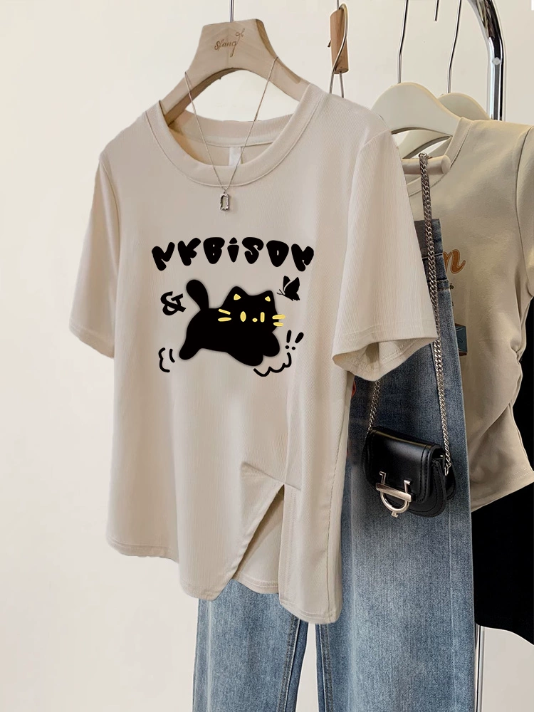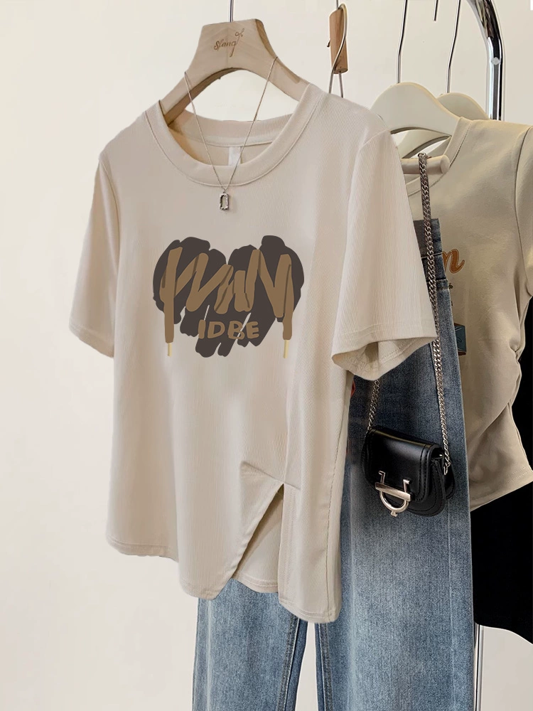 Right shoulder cotton top summer ins niche short-sleeved t-shirt