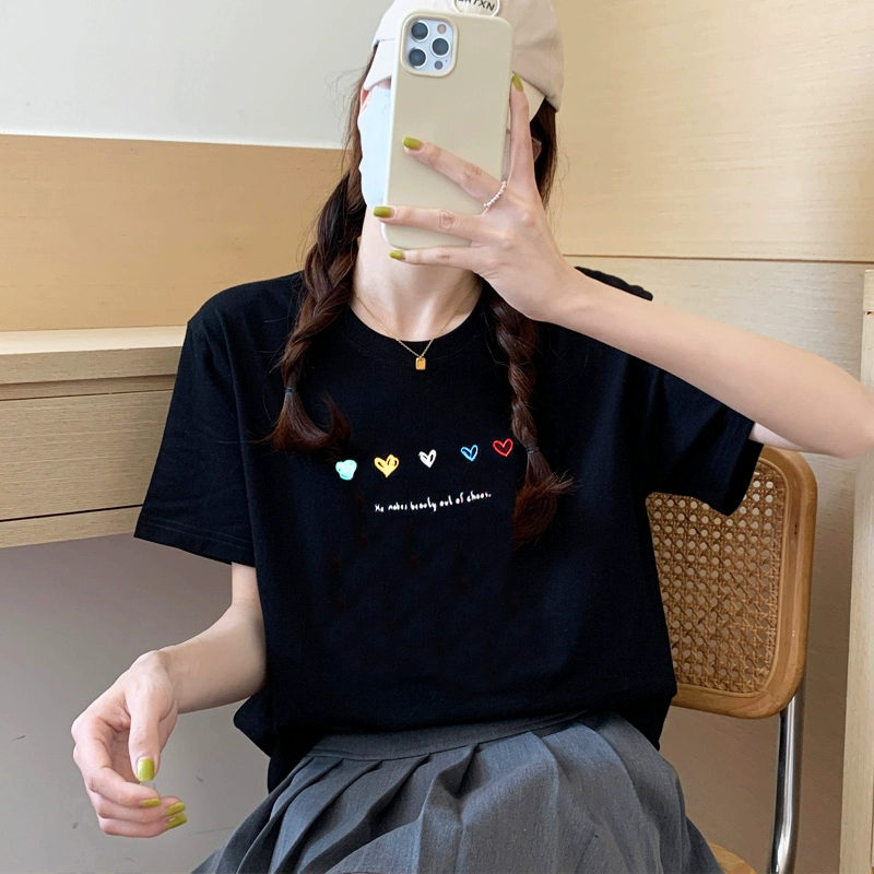 Front shoulder love pure cotton black short-sleeved ins t-shirt