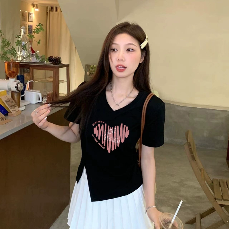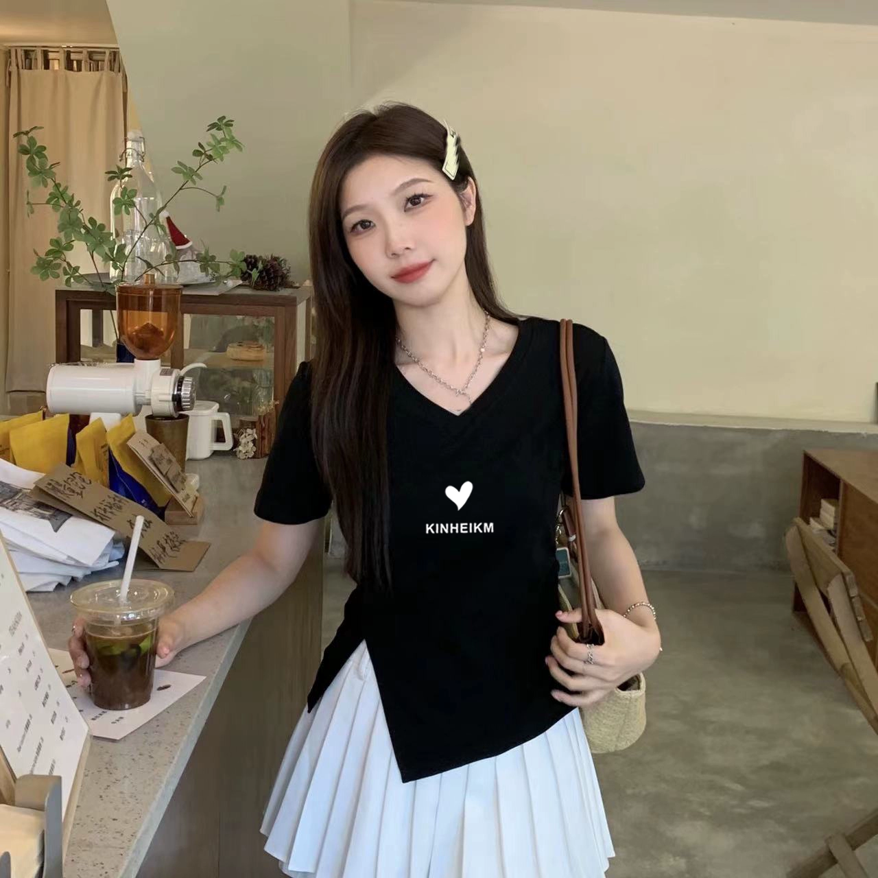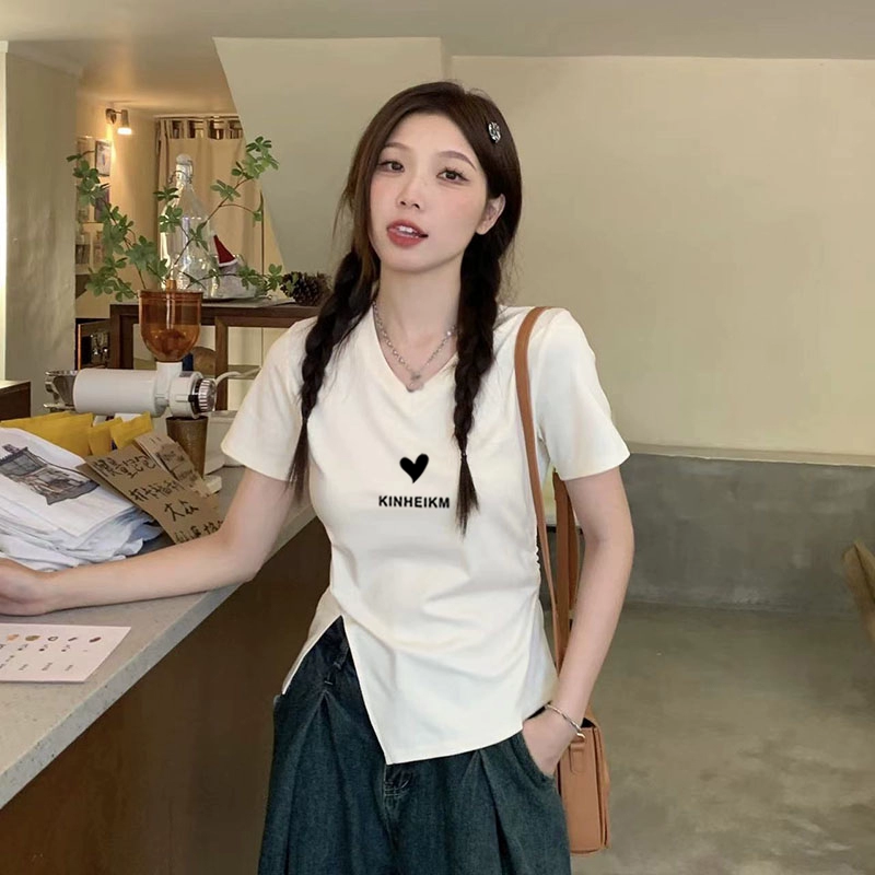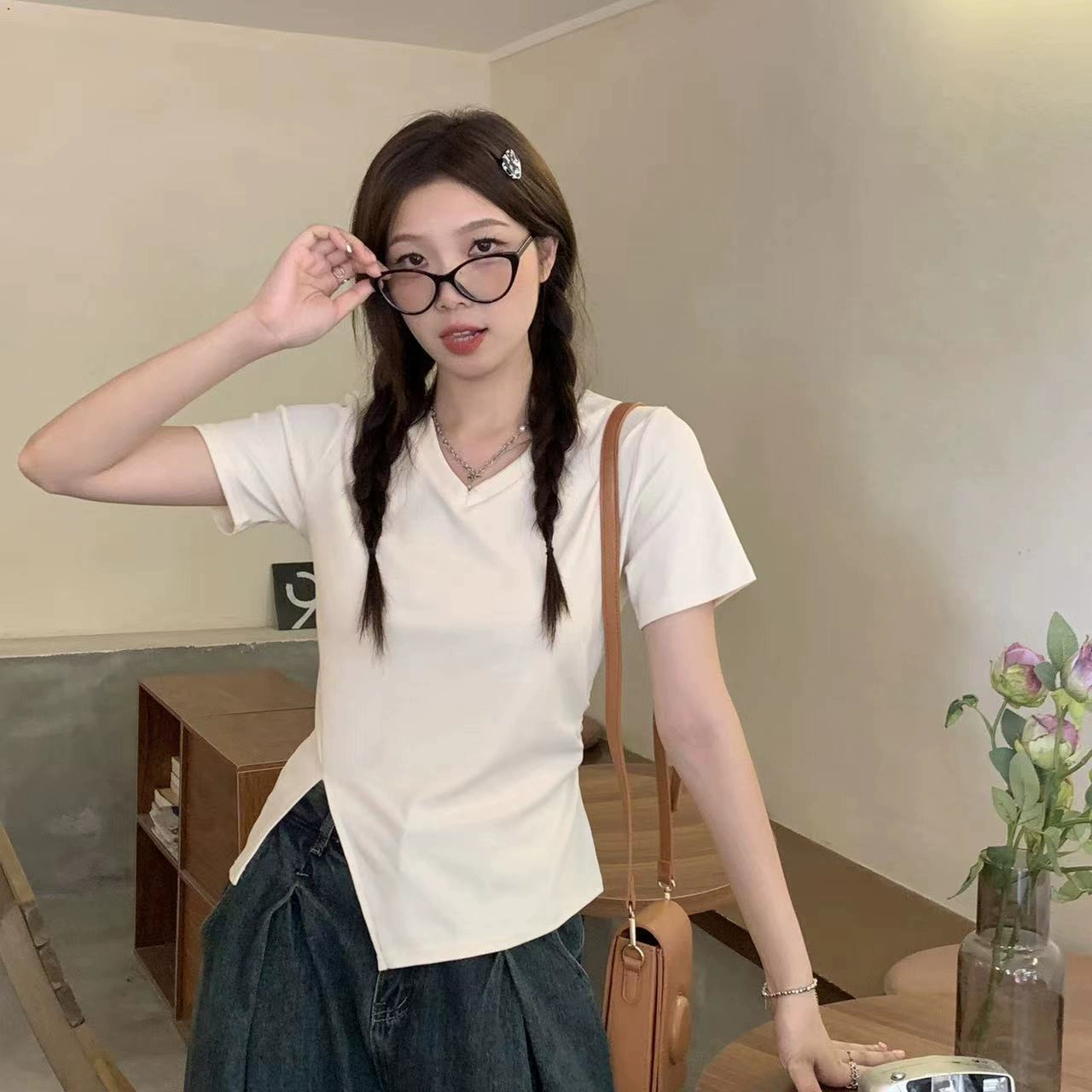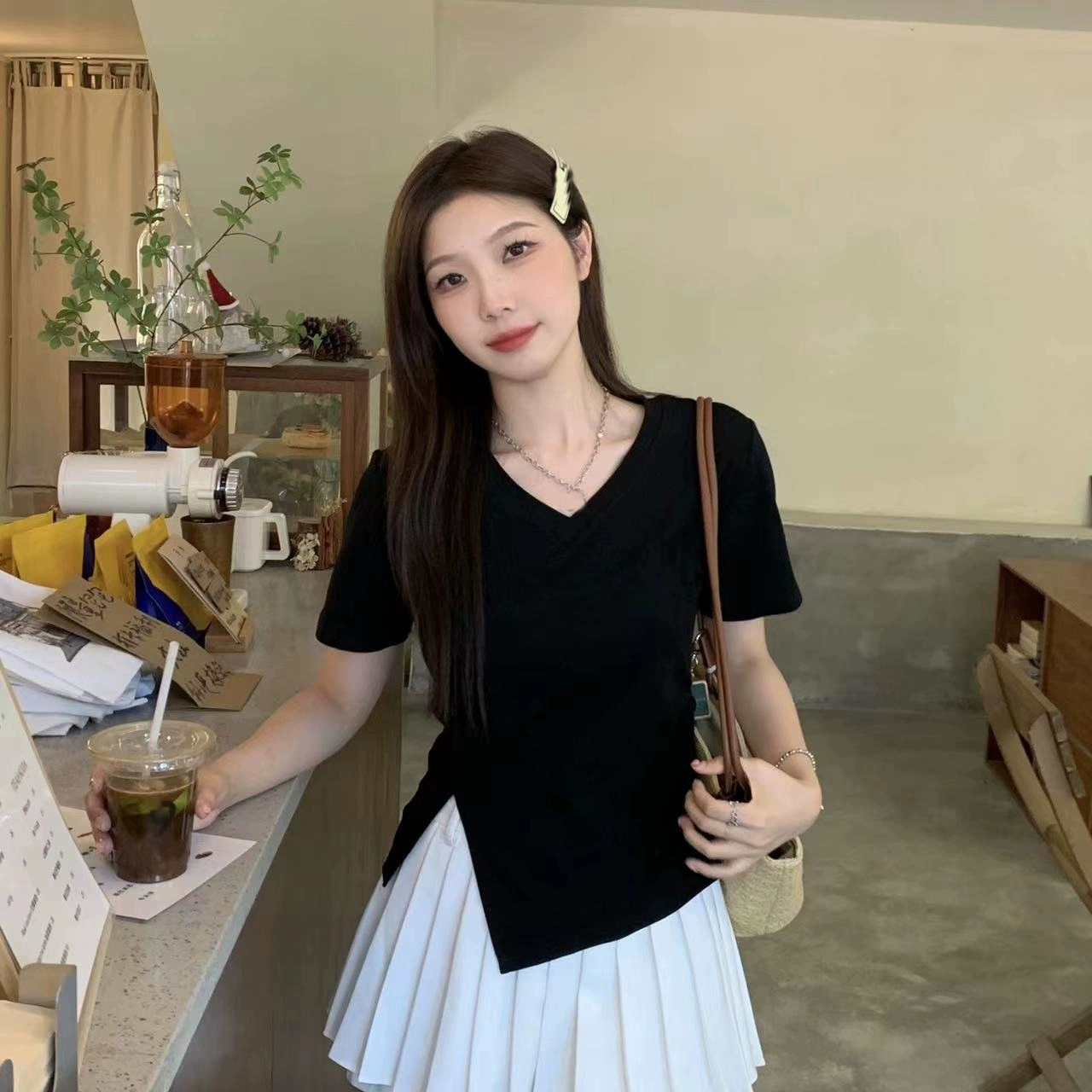 | nameOriginal | Right shoulder slim fit pure cotton design slit short sleeve T-shirt |
