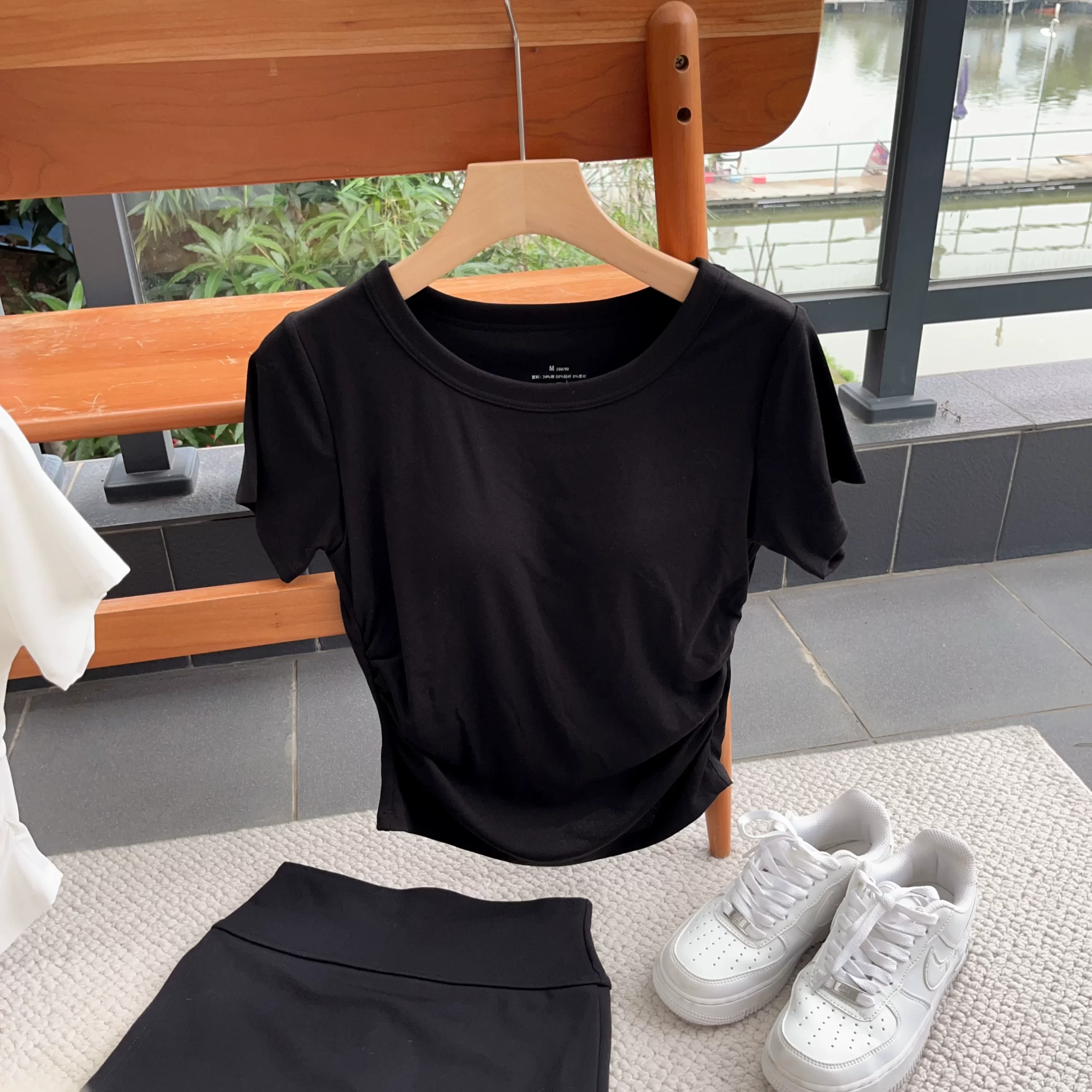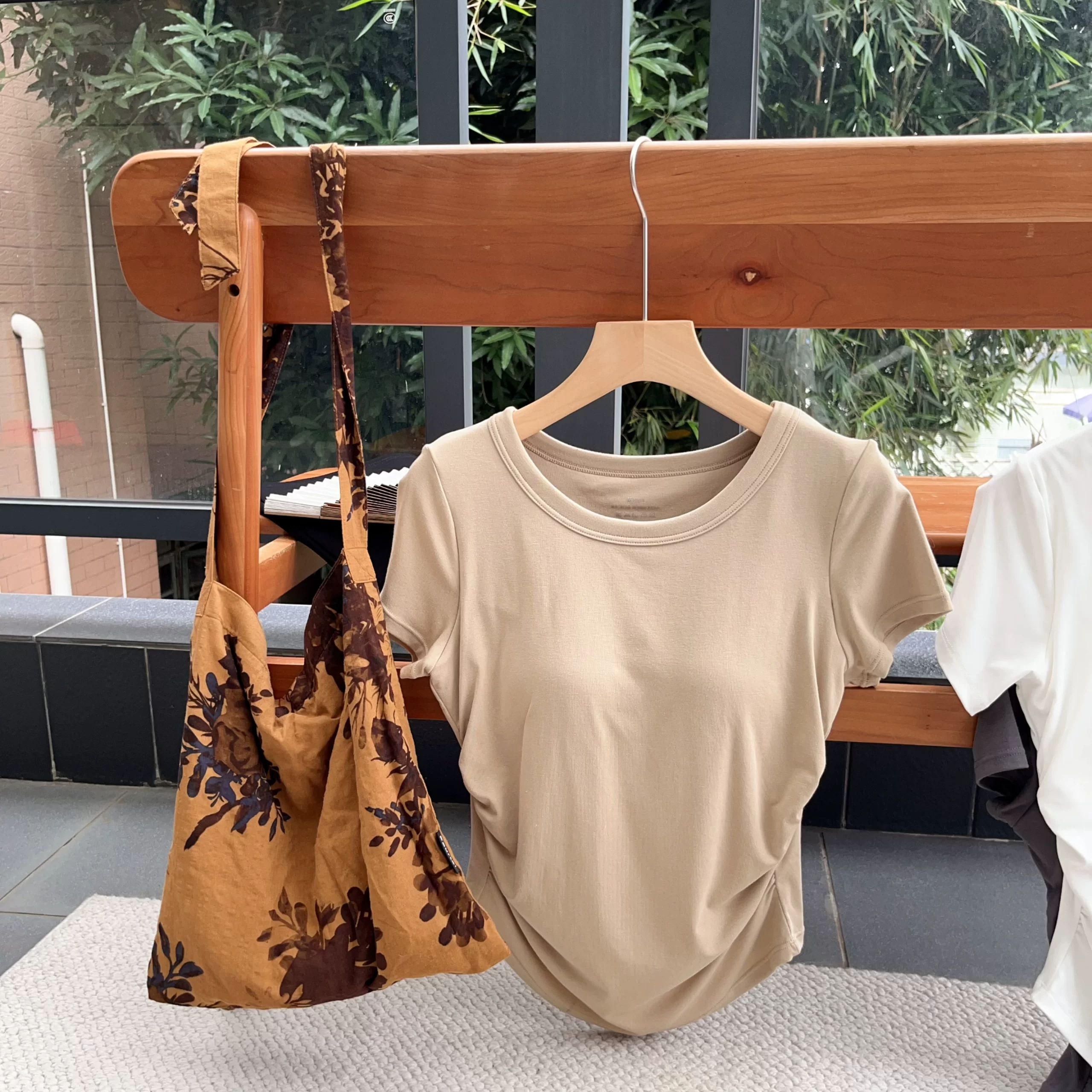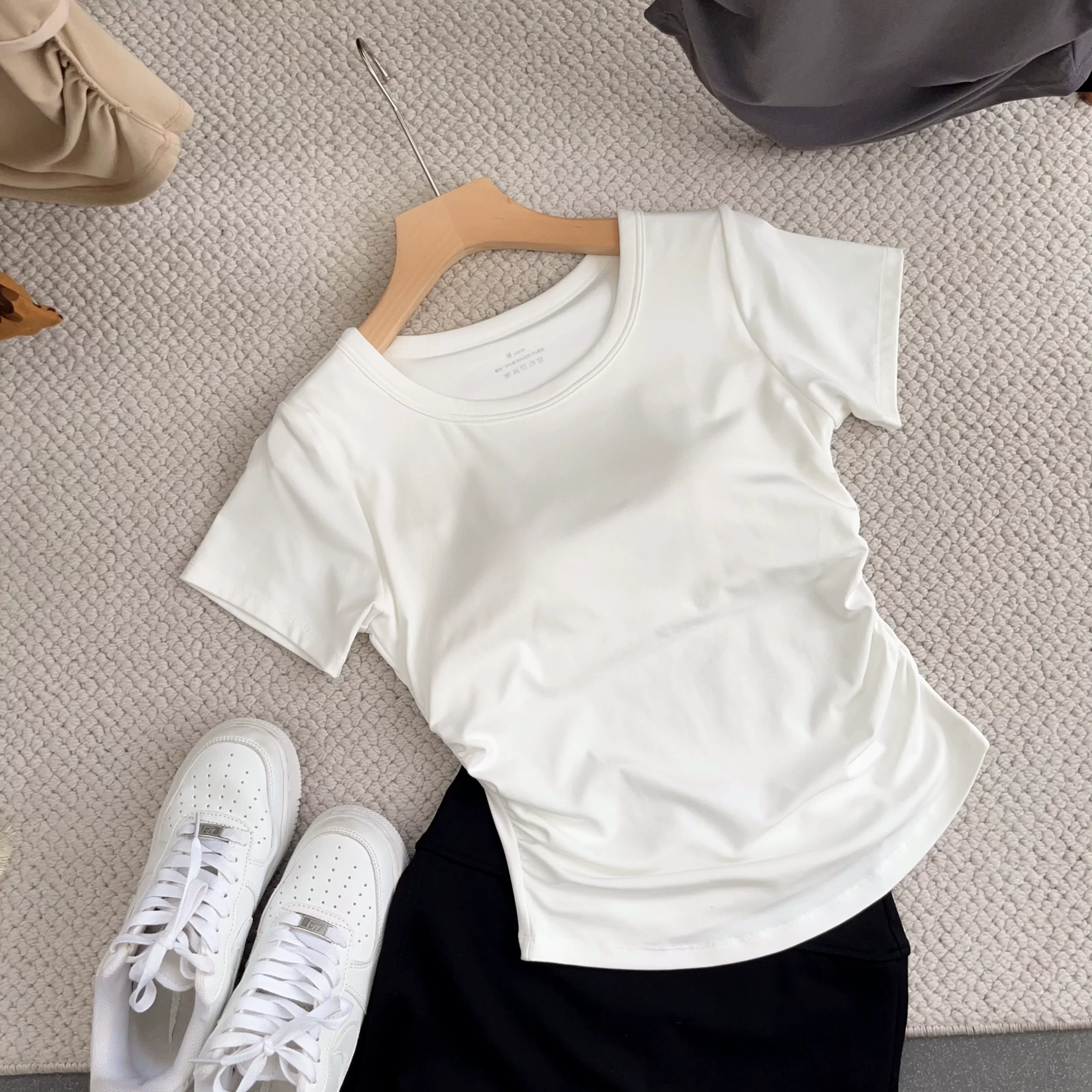 | nameOriginal | Right shoulder slimming chest pad integrated pleated short-sleeved T-shirt |