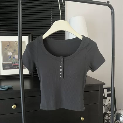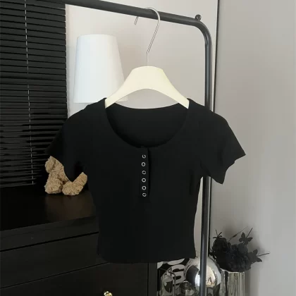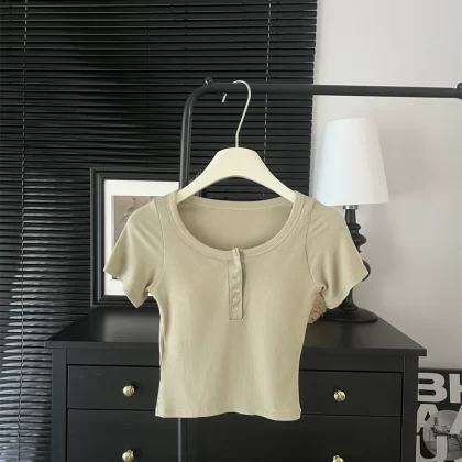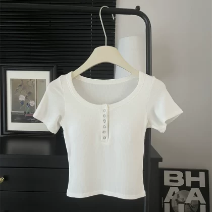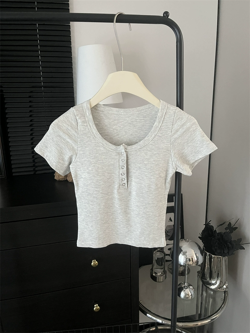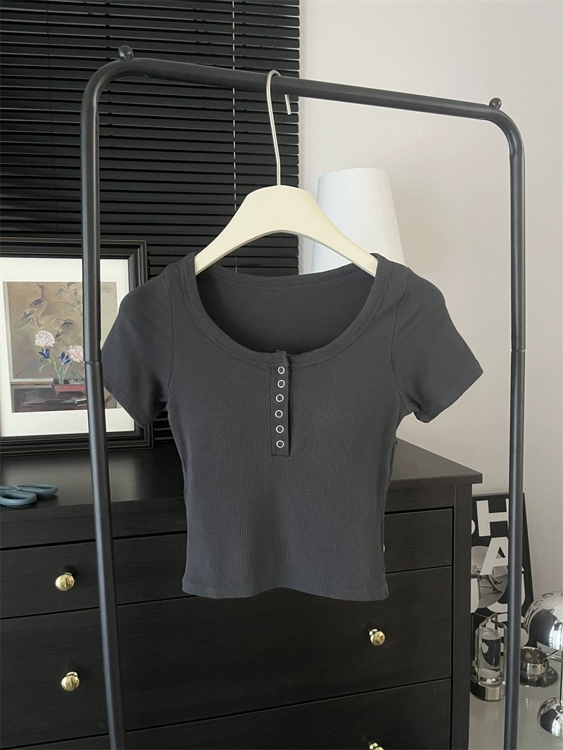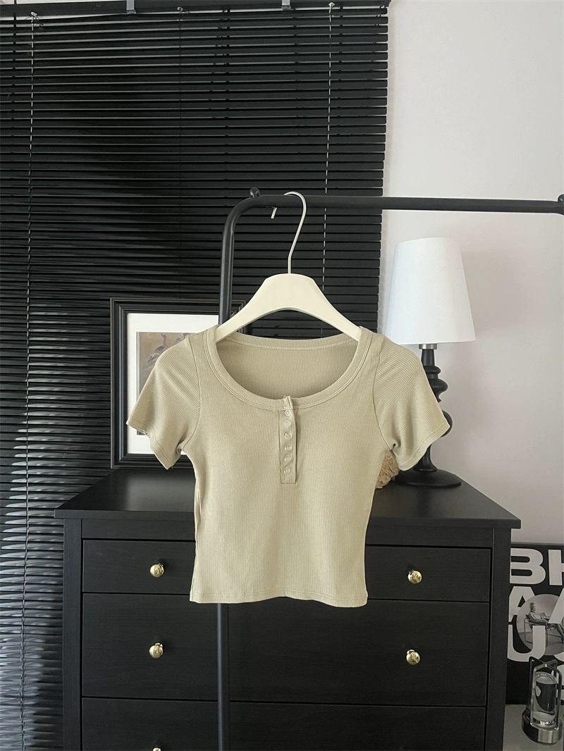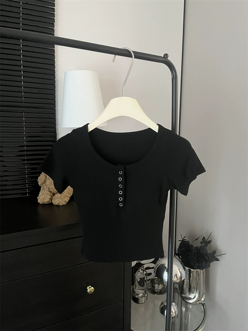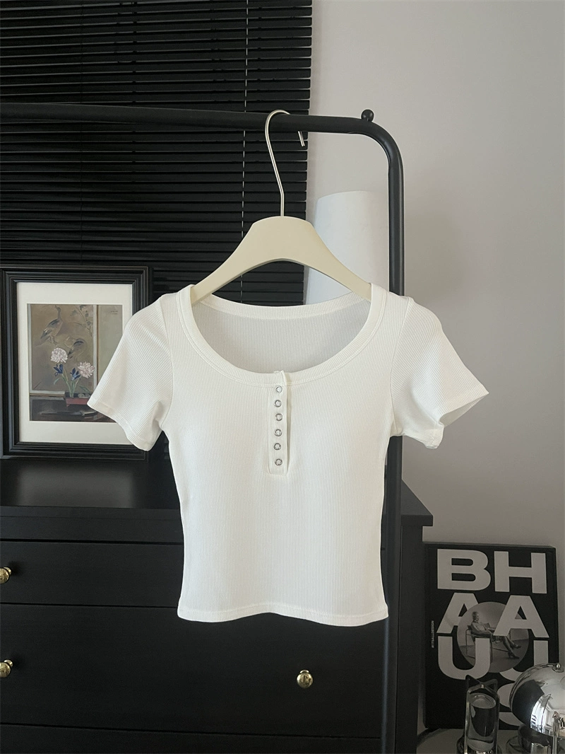 | nameOriginal | Right-shoulder summer design slim-fit solid color short-sleeved T-shirt |