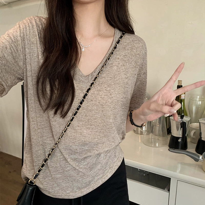 Right shoulder summer loose design niche short-sleeved T-shirt