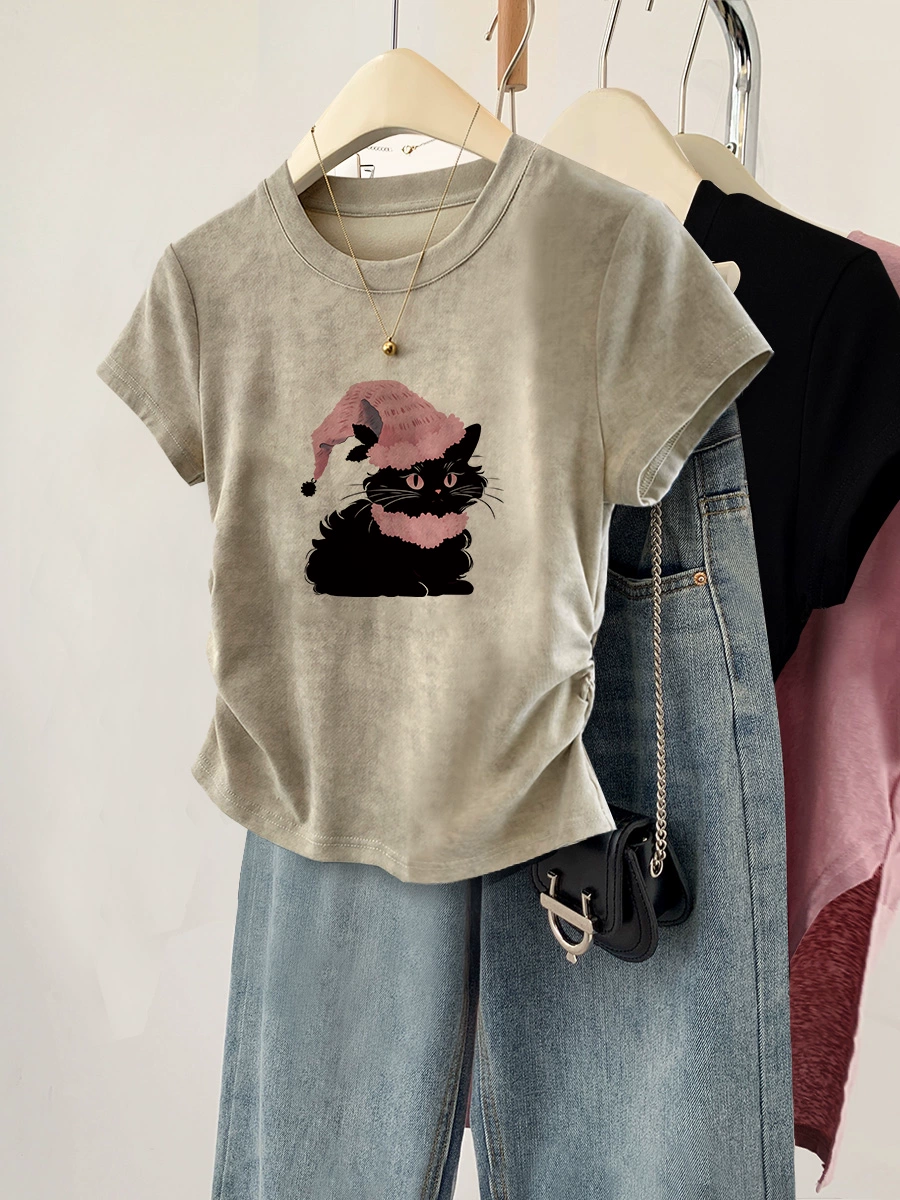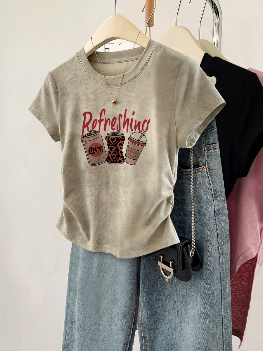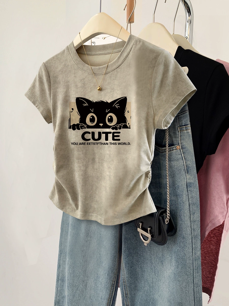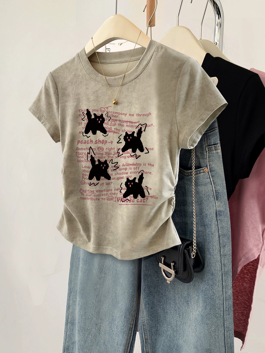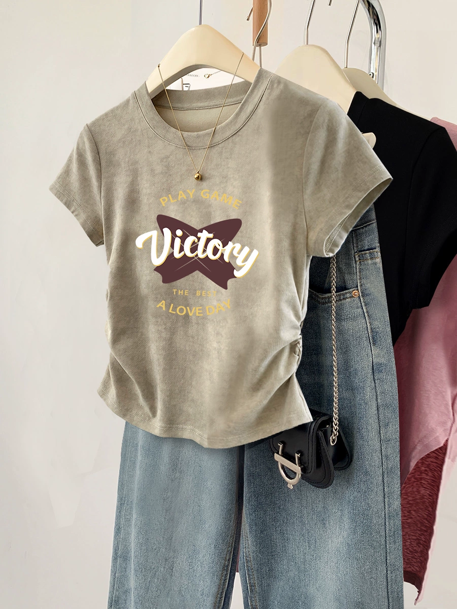 | nameOriginal | Right shoulder summer new waist ins printed short-sleeved T-shirt |
