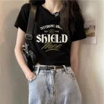 Front shoulder summer cotton slim body short-sleeved T-shirt