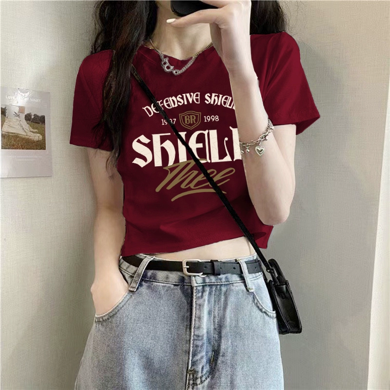 Front shoulder summer cotton slim body short-sleeved T-shirt