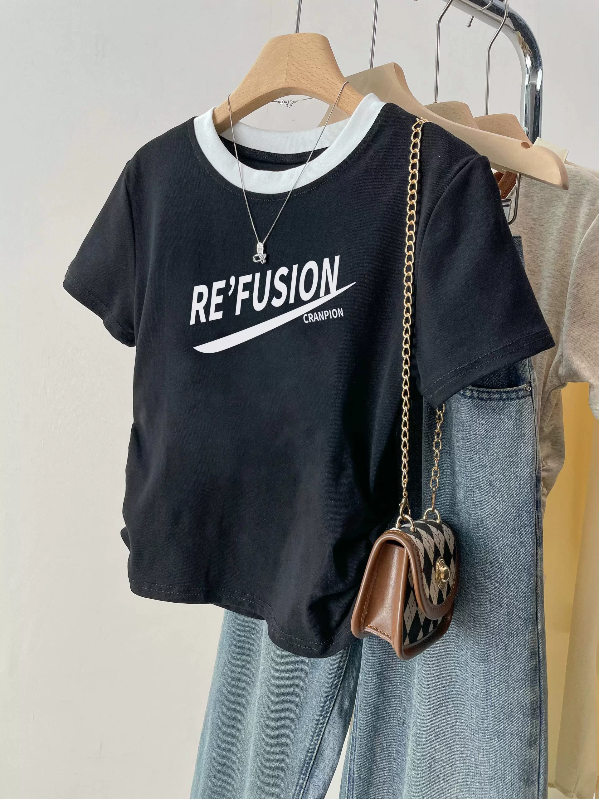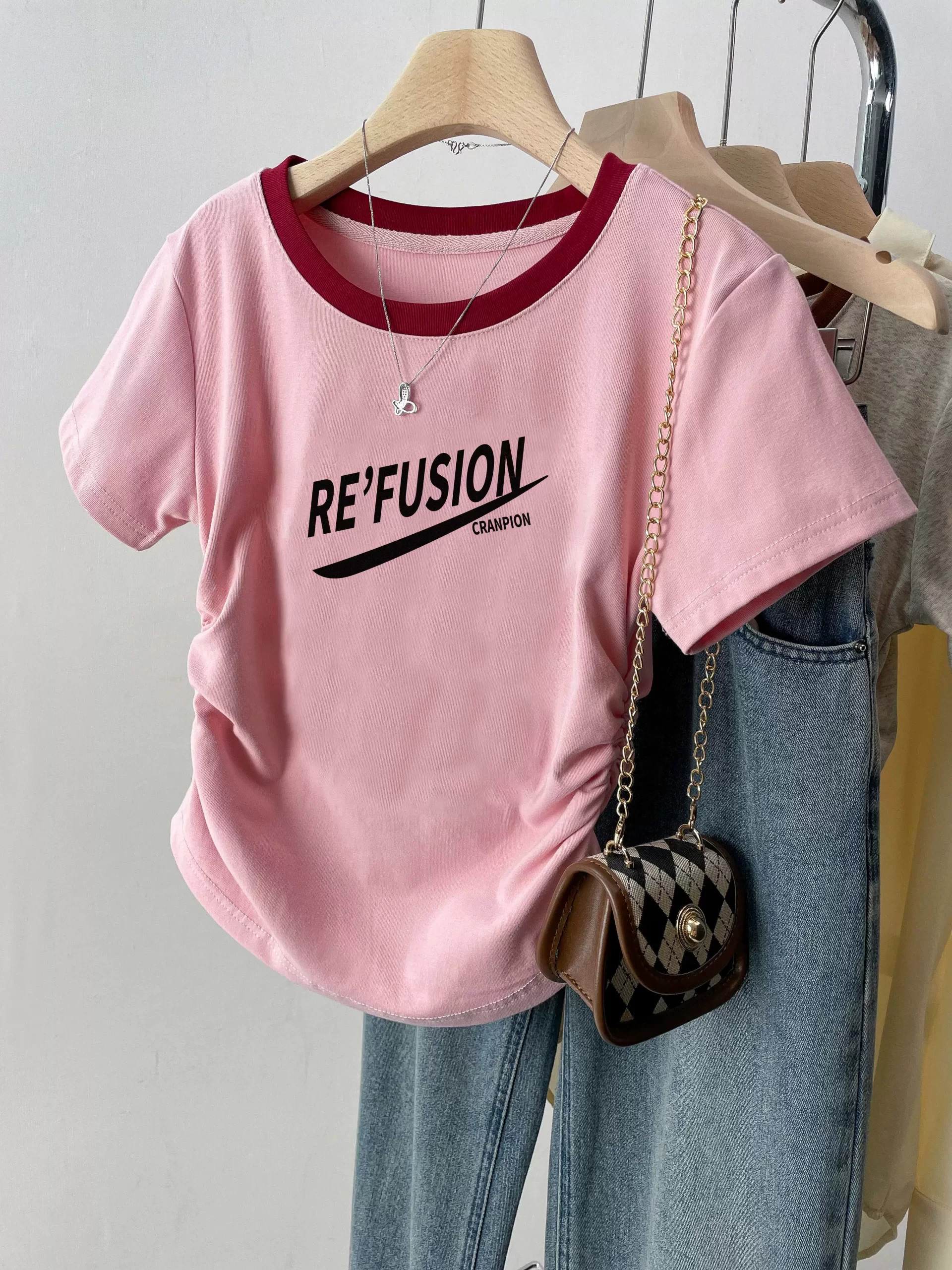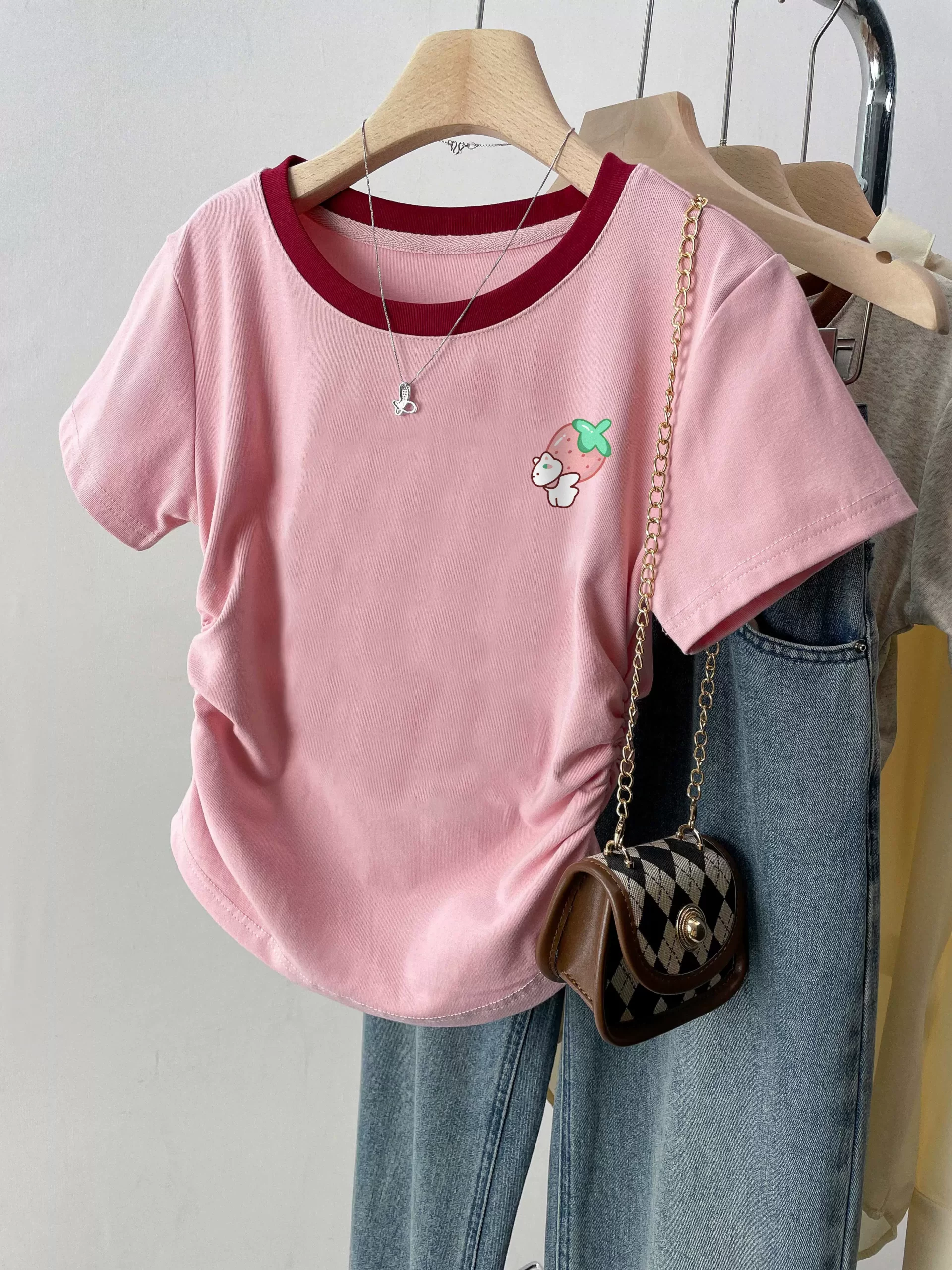 | nameOriginal | Right shoulder summer slim design top short-sleeved T-shirt |