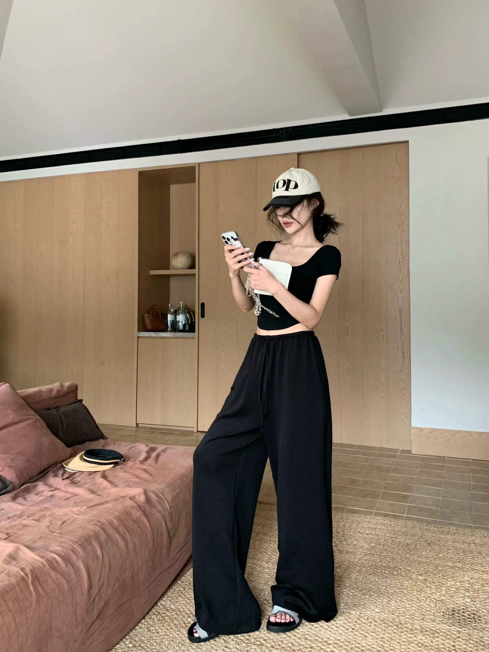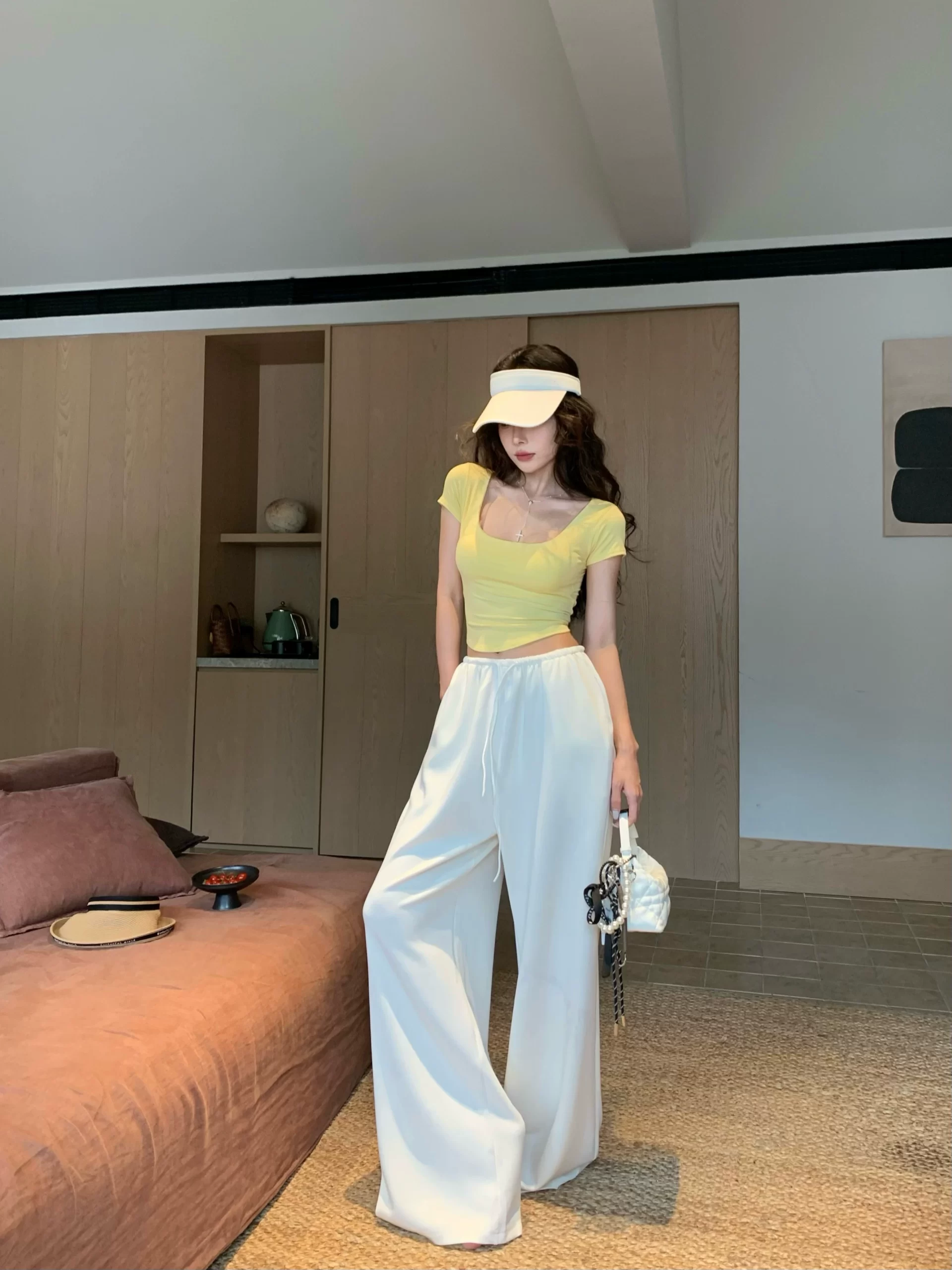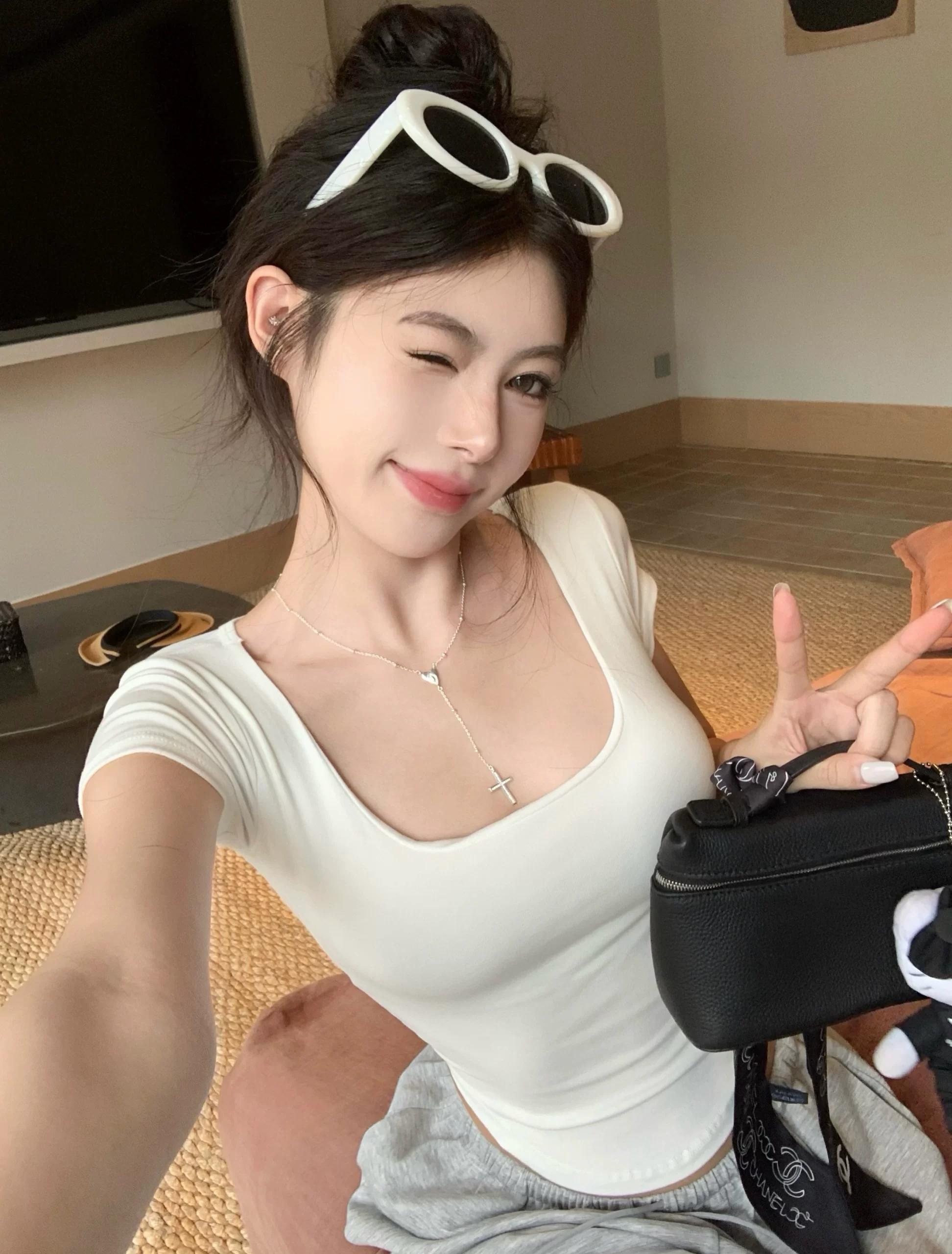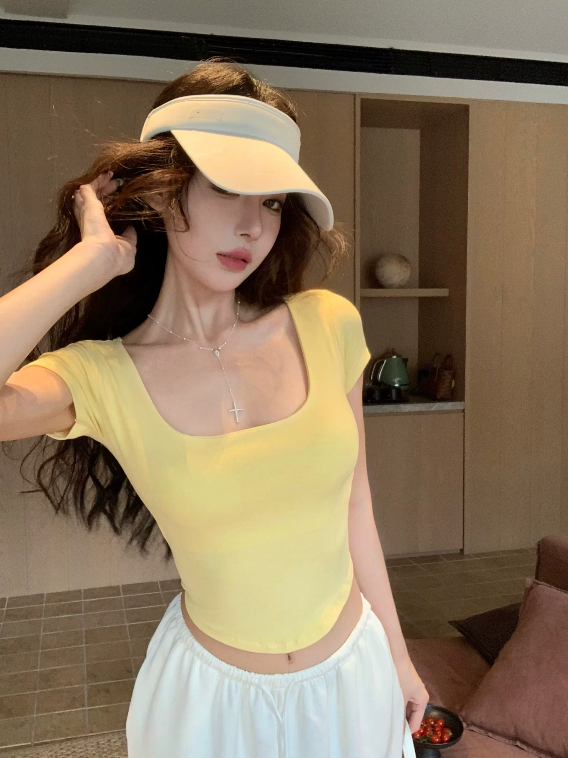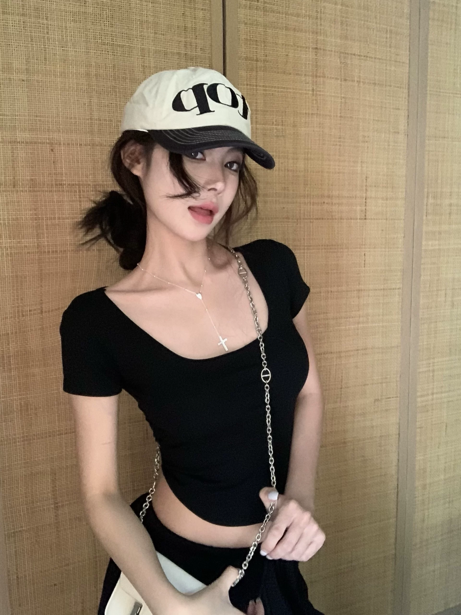 | nameOriginal | Right shoulder T-shirt summer slim solid color top short sleeve |