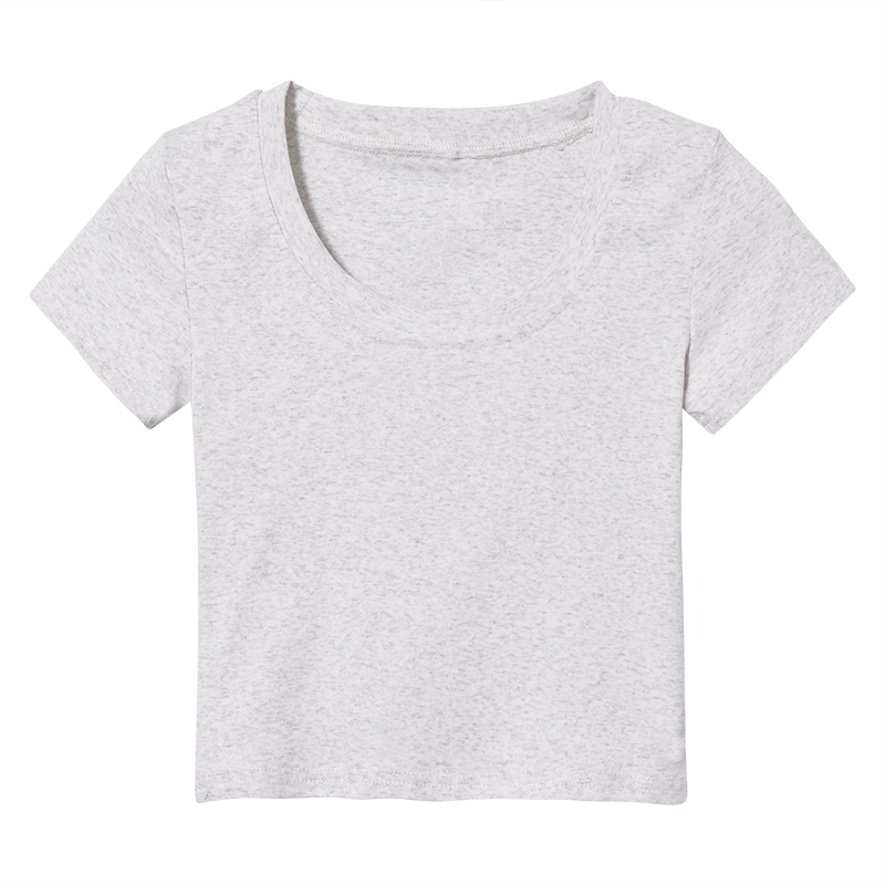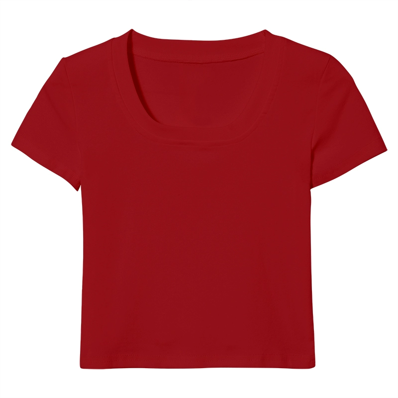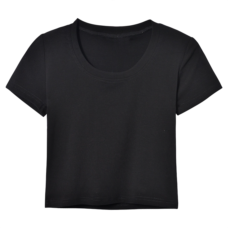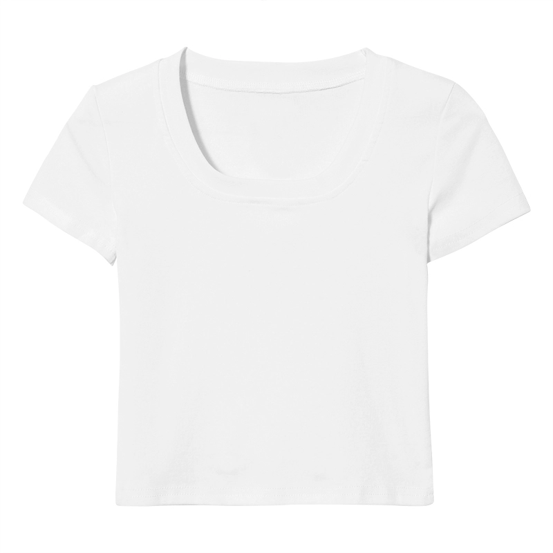 Right shoulder U-neck T-shirt summer slim crop top short sleeves