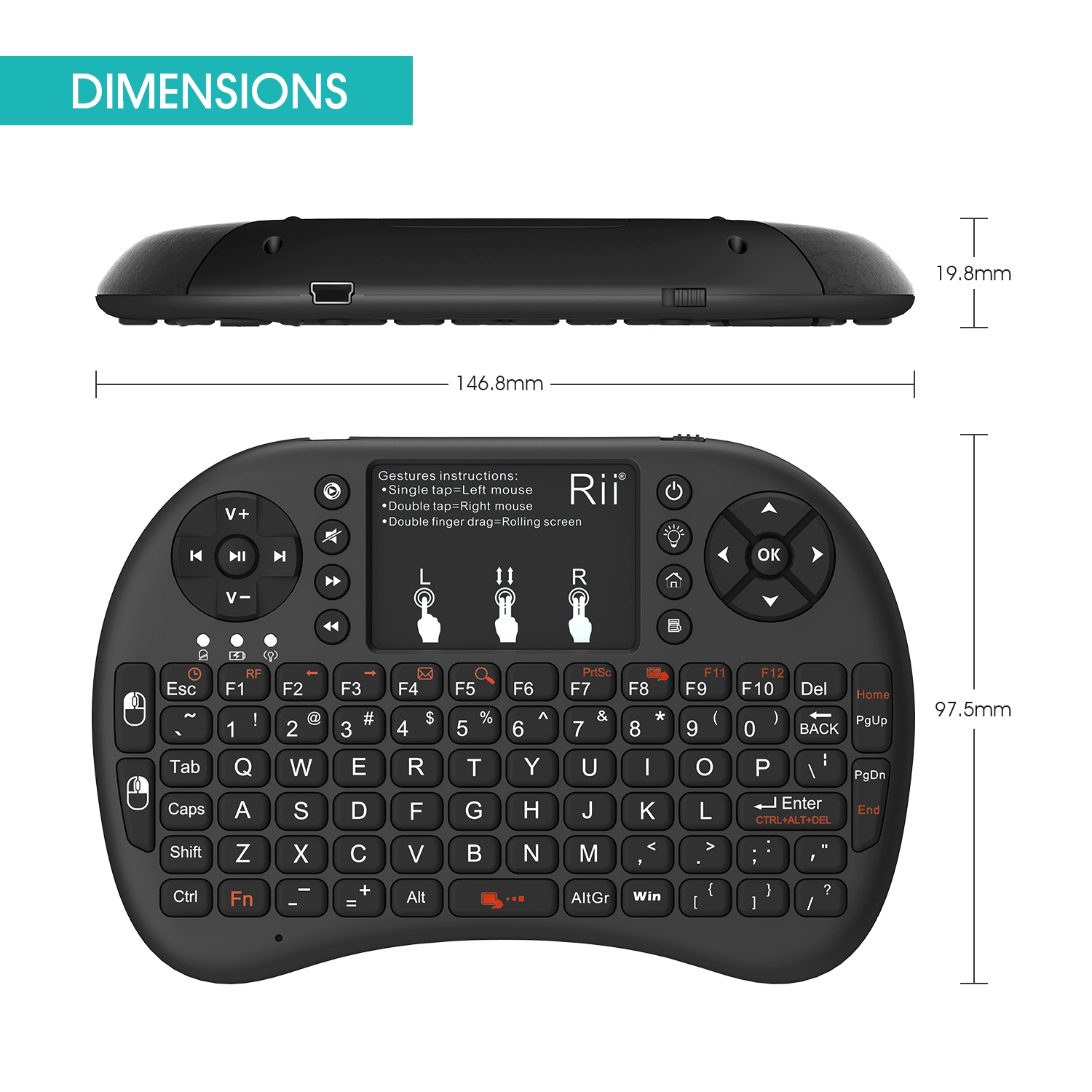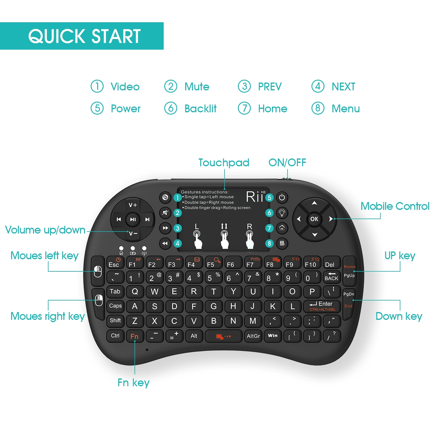 Rii mini i8+ wireless backlit Bluetooth keyboard remote control TV Android tablet phone gaming mouse set