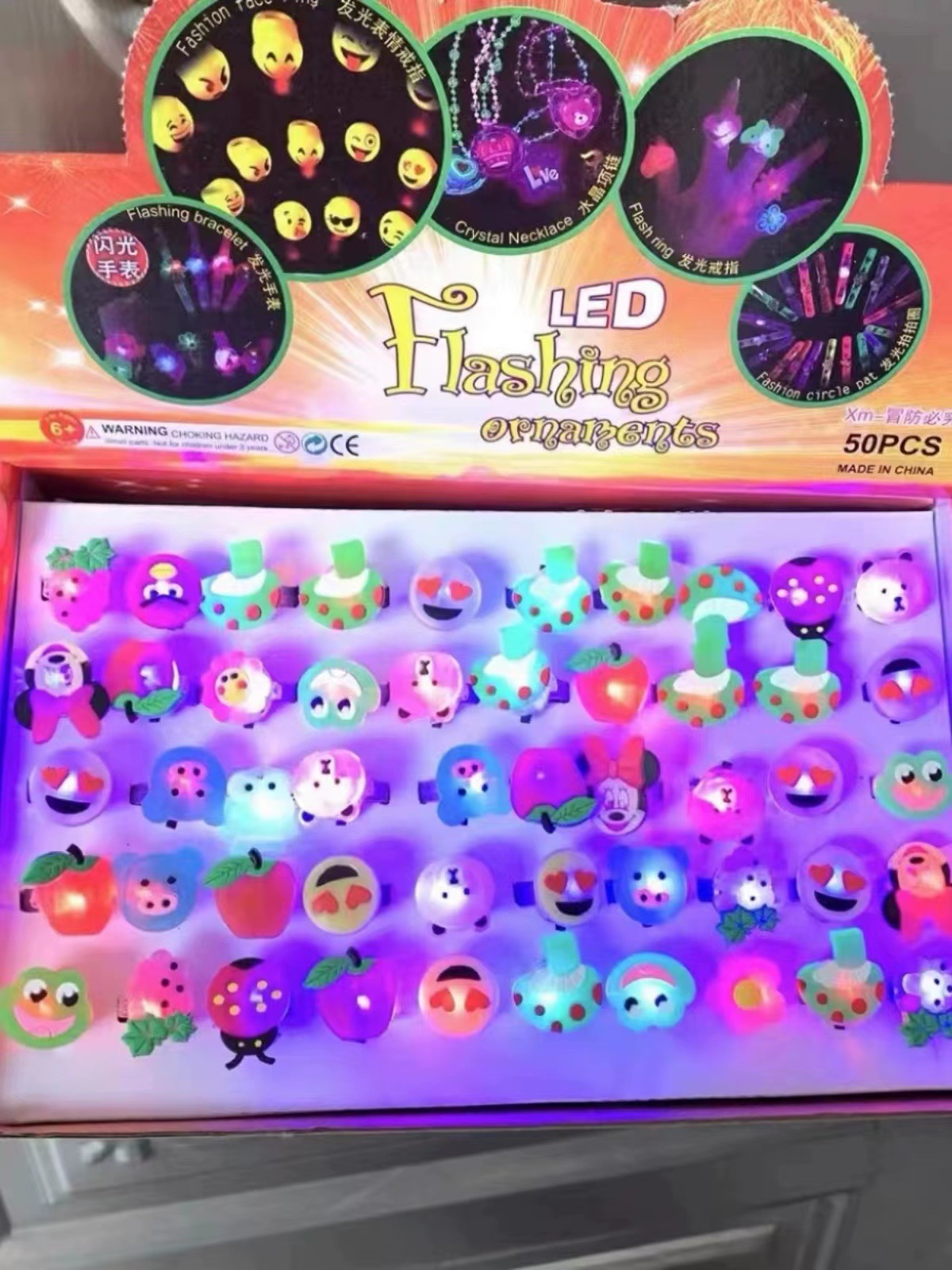 | nameOriginal | Ring children's creative small toy cartoon luminous finger light luminous flash ring stall Yiwu batch |