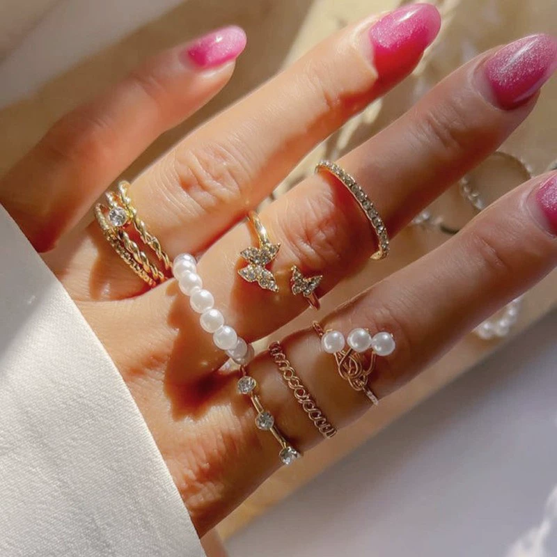 Ring set 8 pieces ring gold star retro leaf joint pearl ring set 8 pieces set