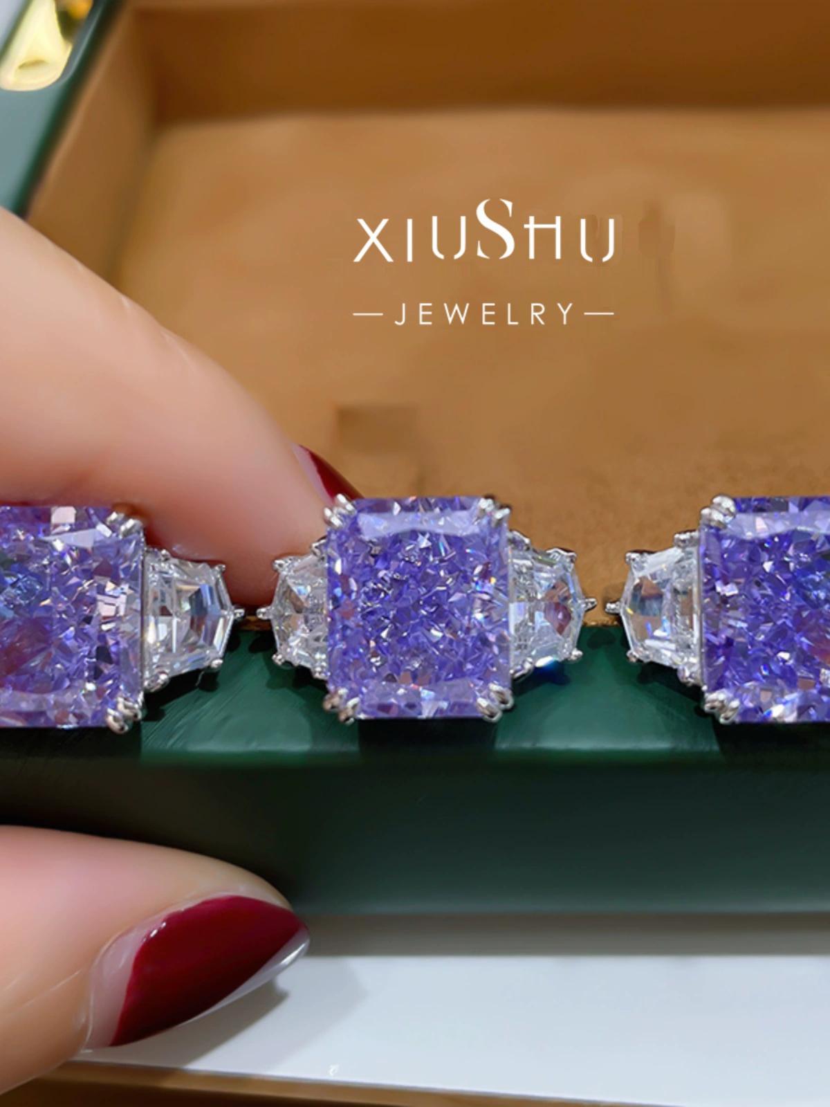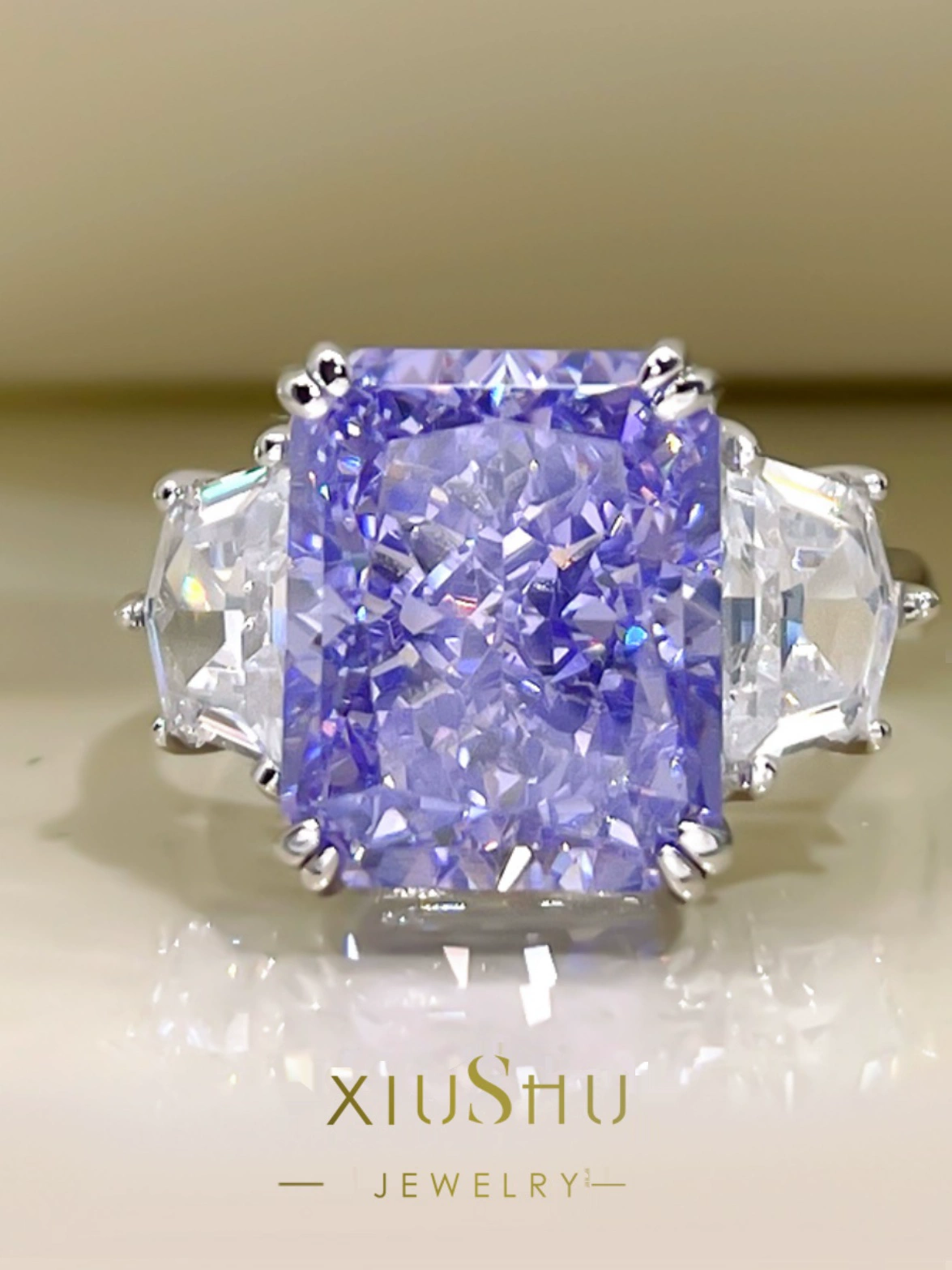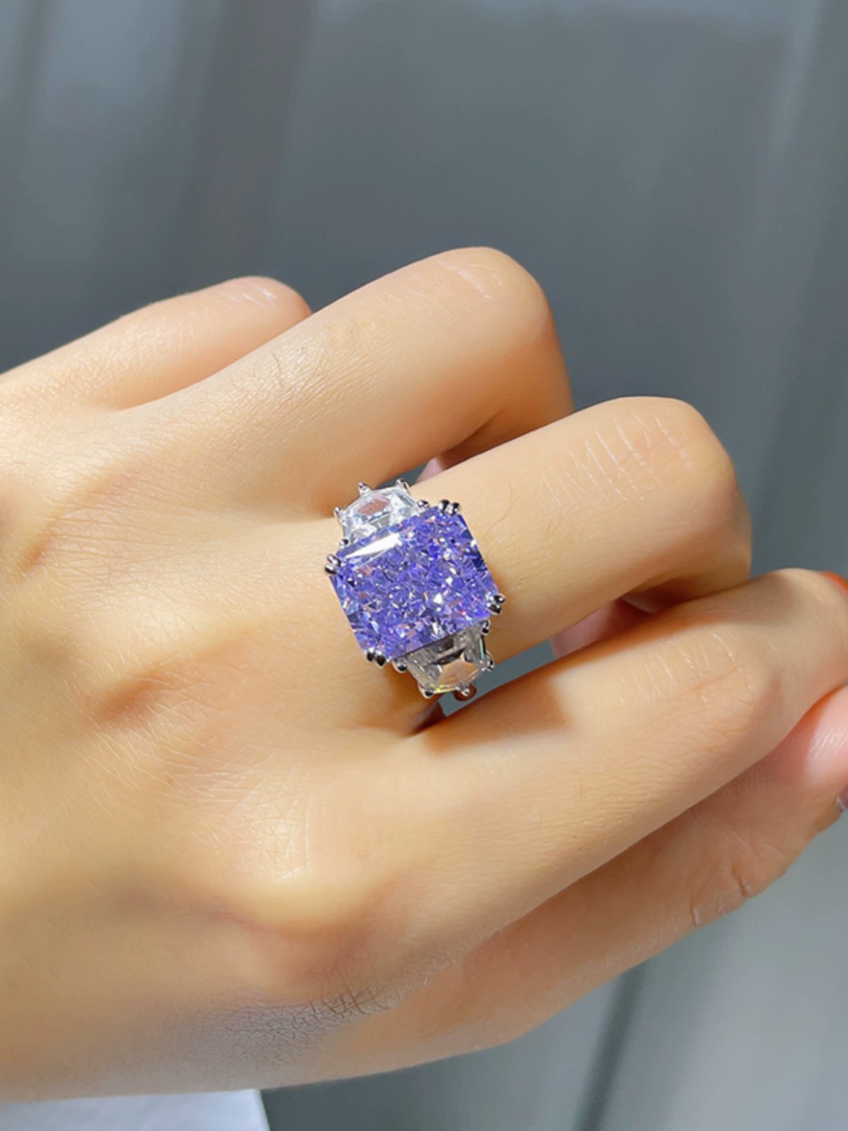 | nameOriginal | Ring women's niche design sterling silver 2021 new fashion imported high carbon diamond reddy ice cut purple blue treasure index finger ring |