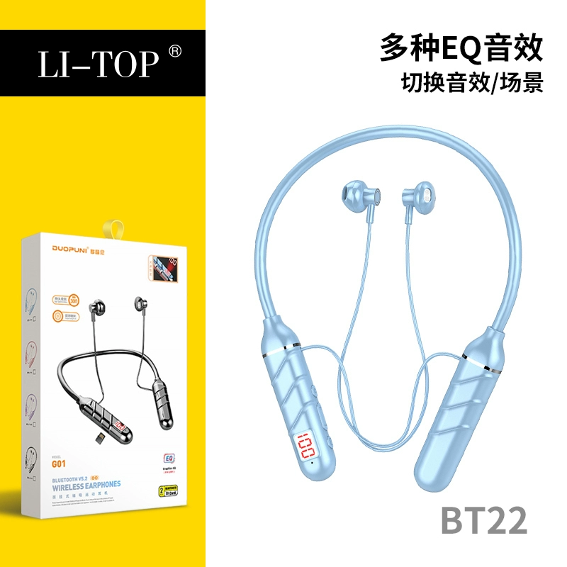 | nameOriginal | Rio Tinto BT22 battery display large battery binaural long battery life Bluetooth wireless neck hanging sports Bluetooth headset |