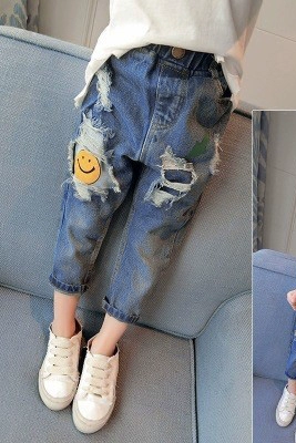 | nameOriginal | Ripped cartoon smiley label jeans for spring and autumn |