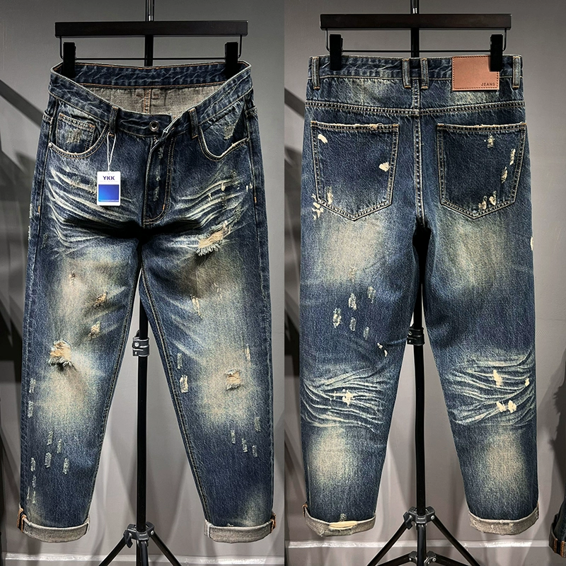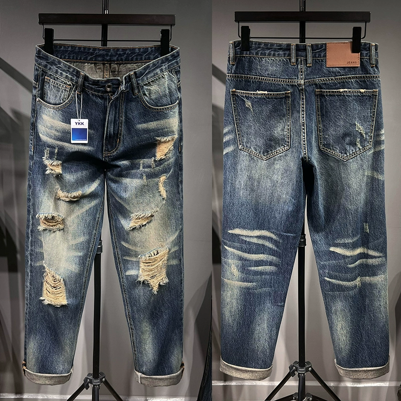 | nameOriginal | Ripped cotton plus fat plus size handsome fat jeans |