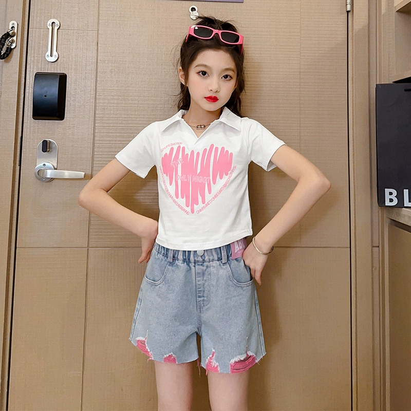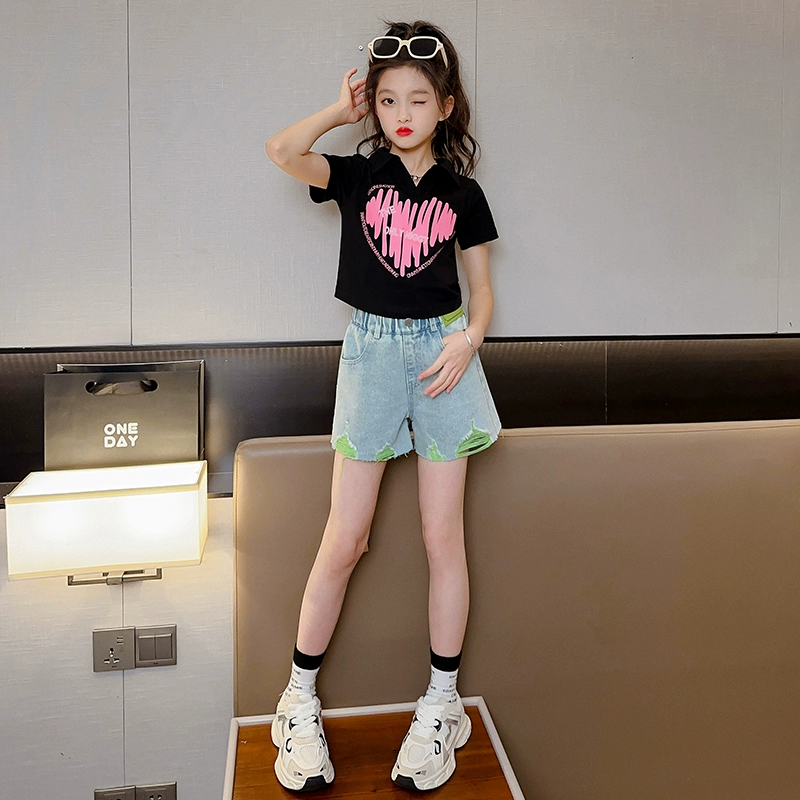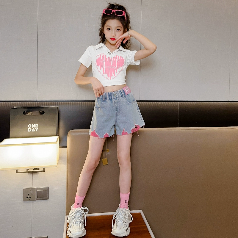 | nameOriginal | Ripped denim shorts girls' tops for middle and older children summer clothes |