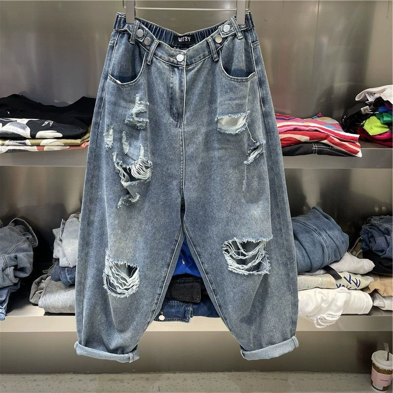 | nameOriginal | Ripped extra large size 300 pounds summer ninth jeans |