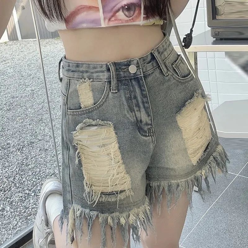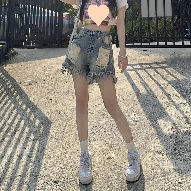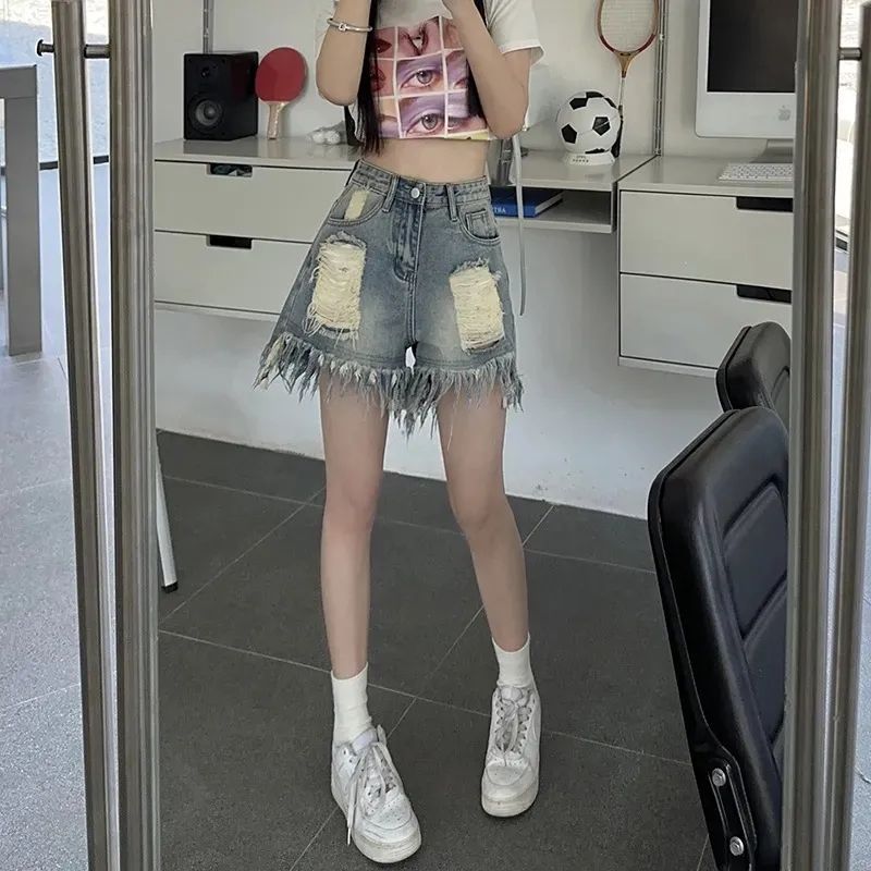 | nameOriginal | Ripped High Waist Denim Shorts Women's 2024 Summer Loose Slimming plus size Chubby Rag Wide Leg Trendy Hot Pants |