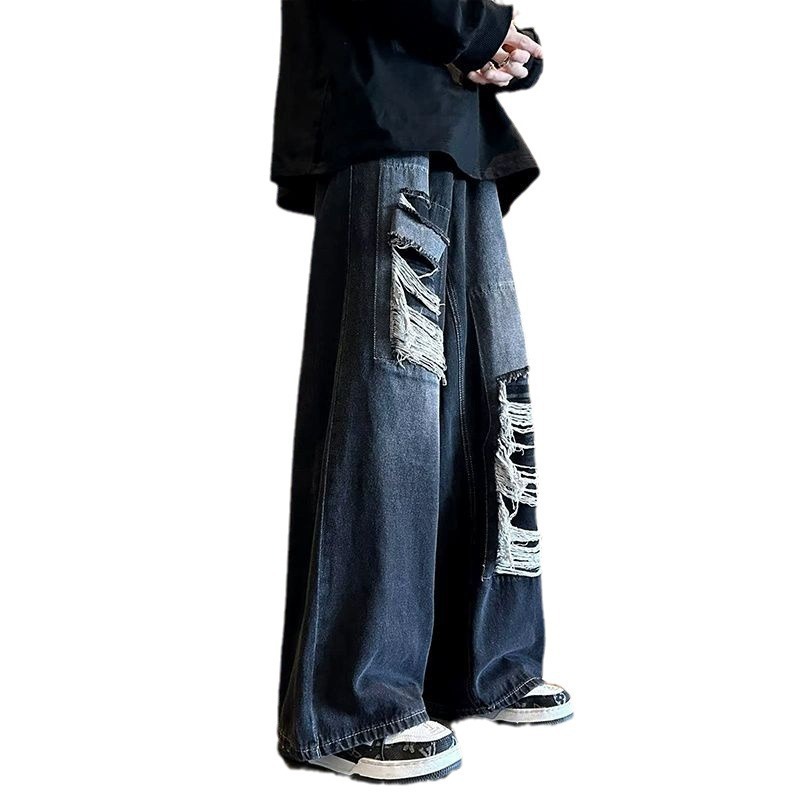 | nameOriginal | Ripped jeans men's Spring American retro loose wide-leg straight trousers fashion brand trendy fried street ruffle handsome pants |