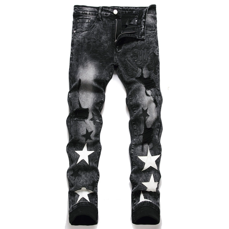 | nameOriginal | Ripped jeans with skull print and rhinestoned feet |