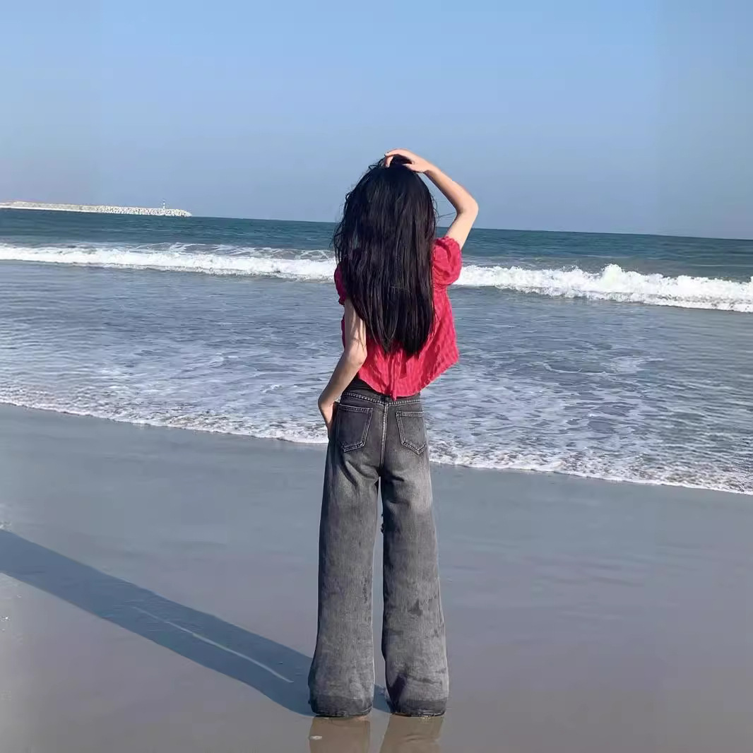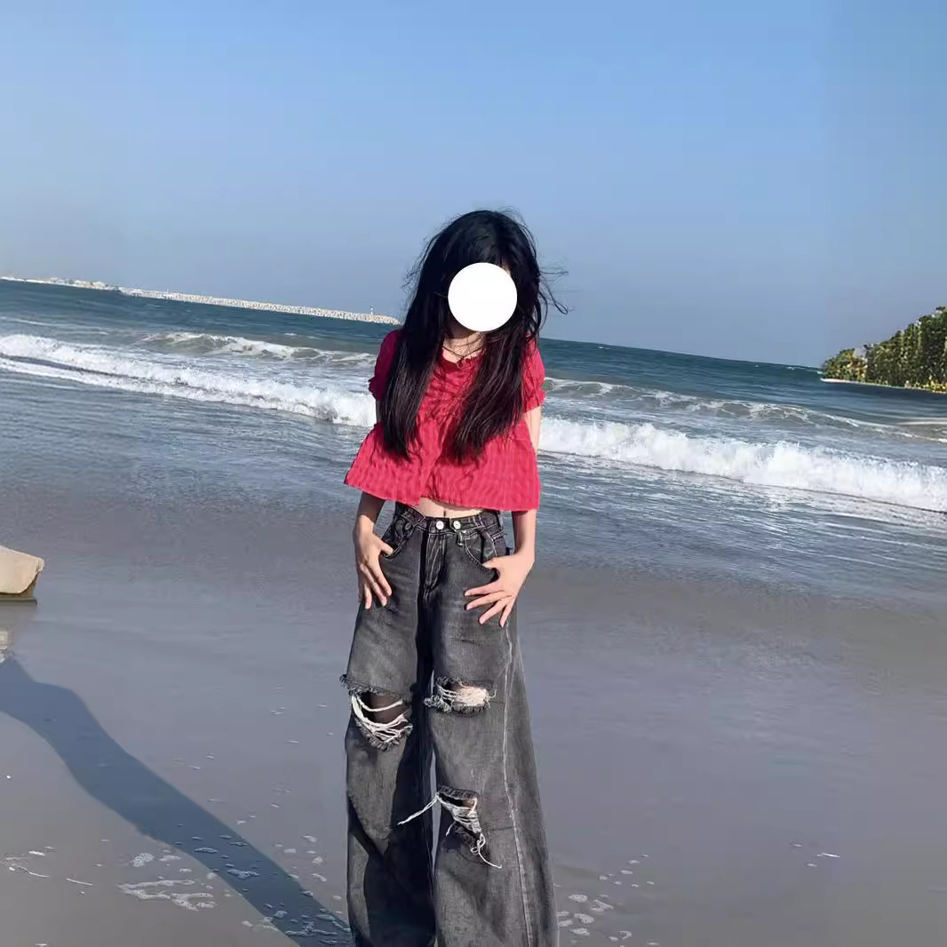 | nameOriginal | Ripped Jeans Women's 24 Summer New High Waist Dipped Wide Leg Pants Loose Straight Design Trendy Long Pants |