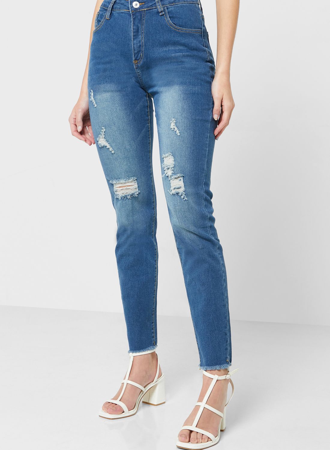 | nameOriginal | Straight Fit Jeans With Rip At Knee |