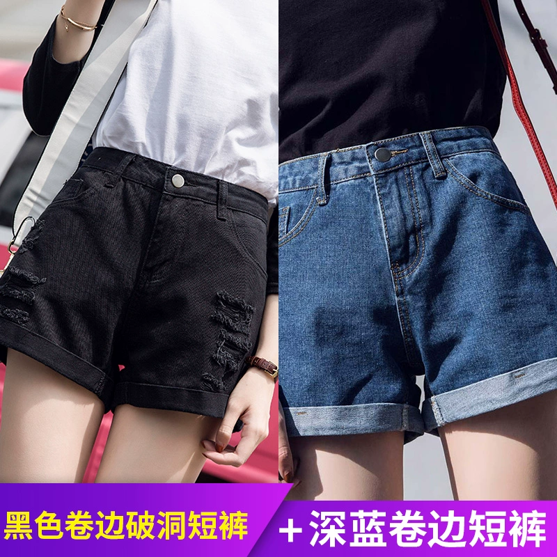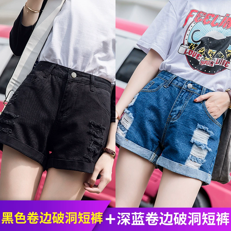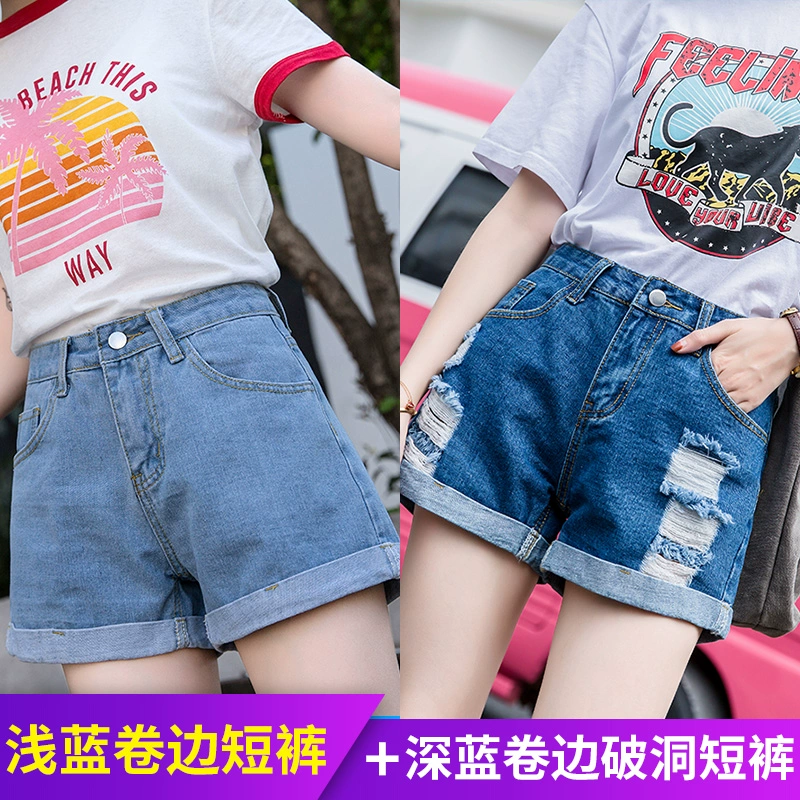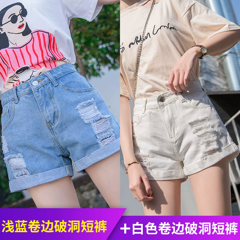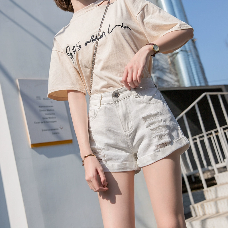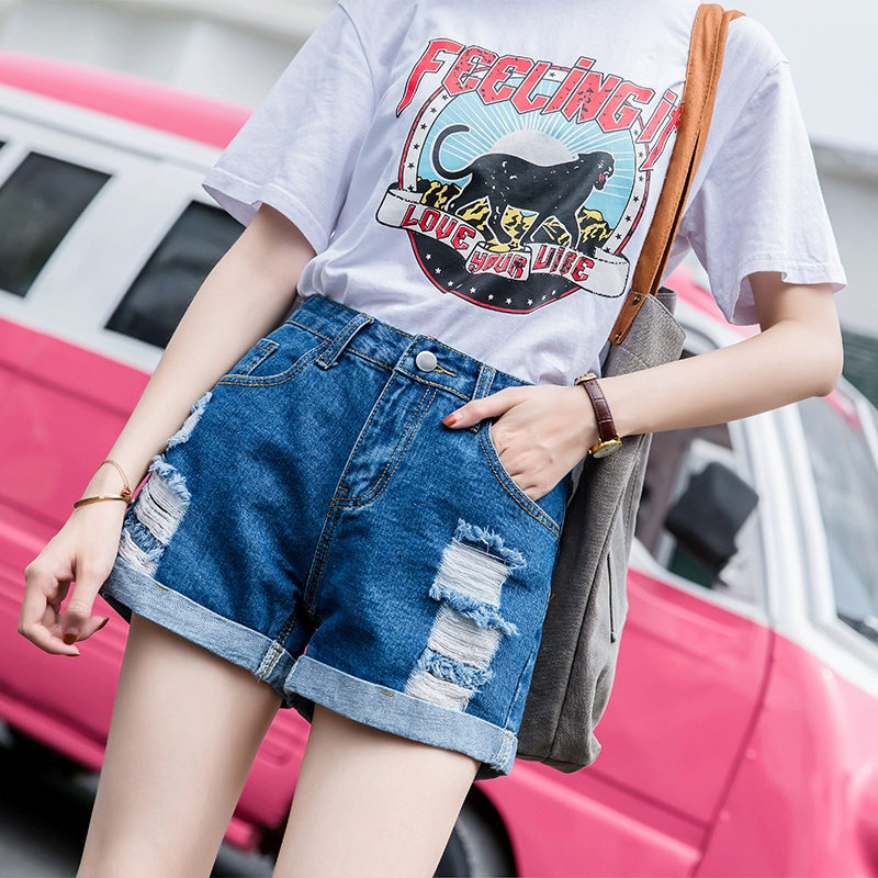 Ripped loose Korean style high waisted denim shorts