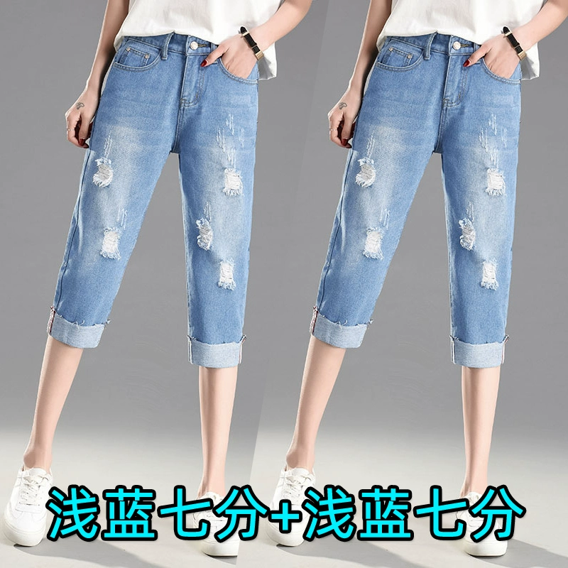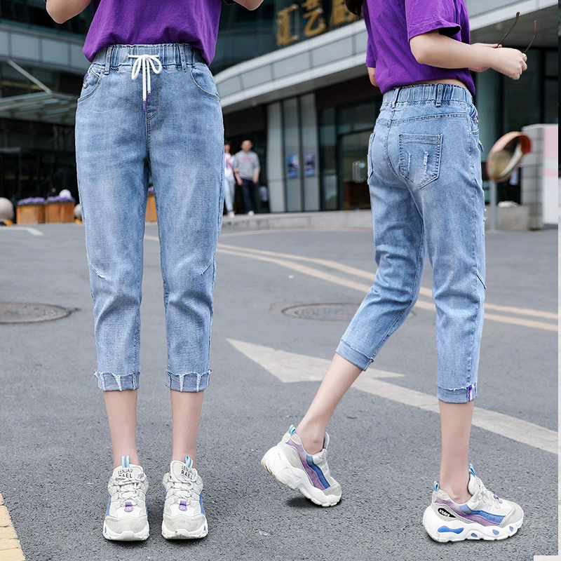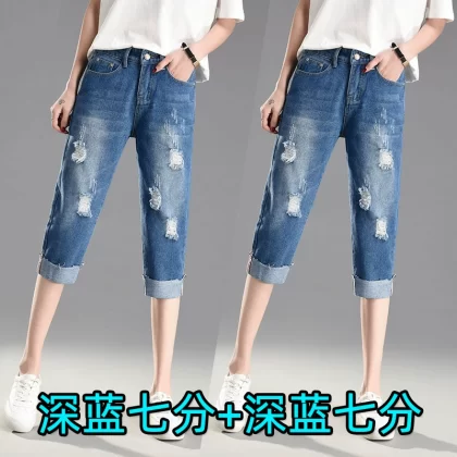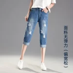 Ripped loose tight high waisted plus size fat mm cropped pants