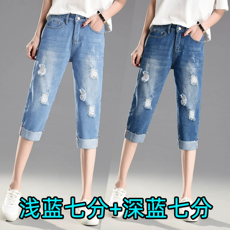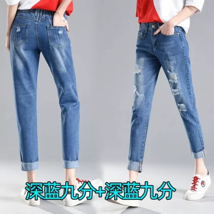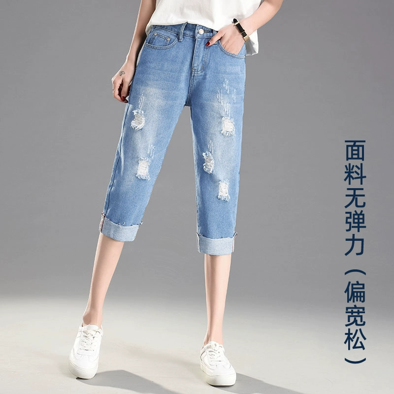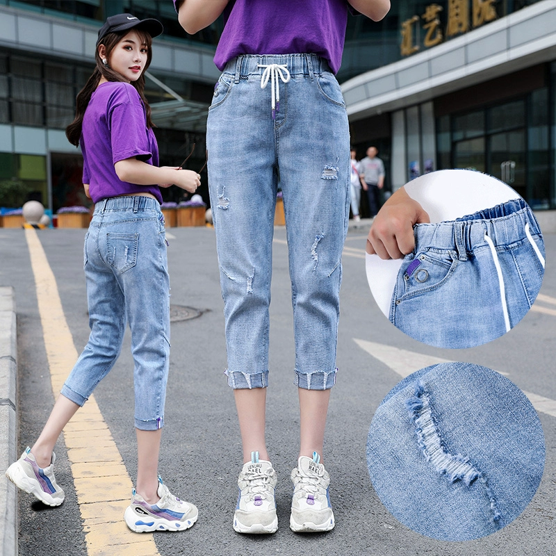 Ripped loose tight high waist large size fat mm cropped pants