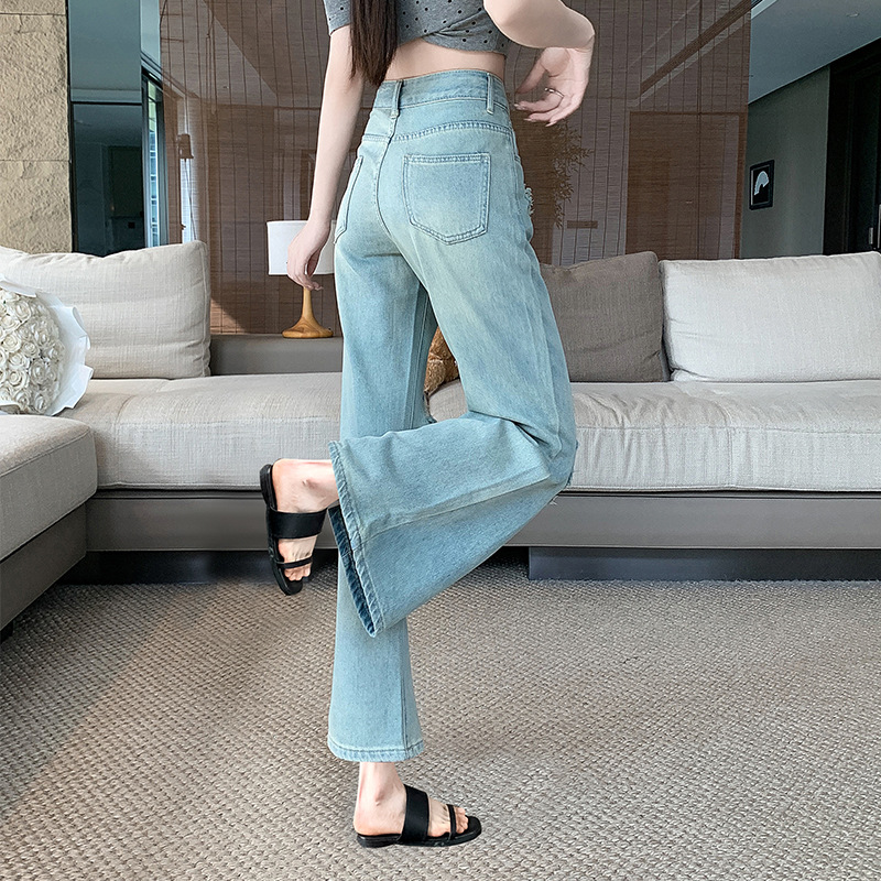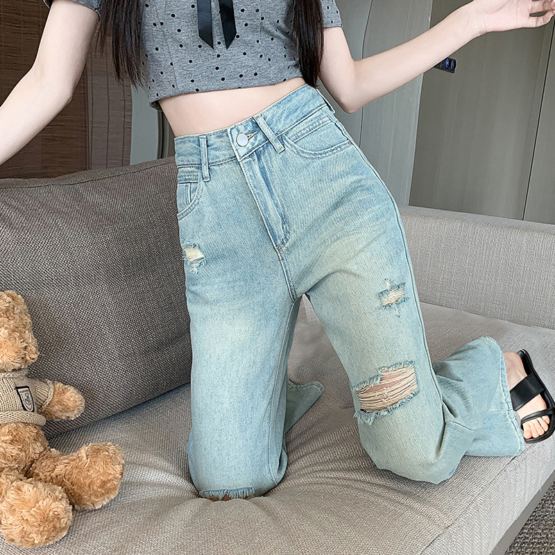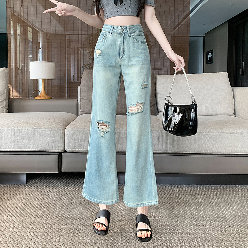 | nameOriginal | Ripped Micro-blared Jeans Women's Summer Thin 2024 New High Waist Slimming Small Horseshoe Trumpet Pants |