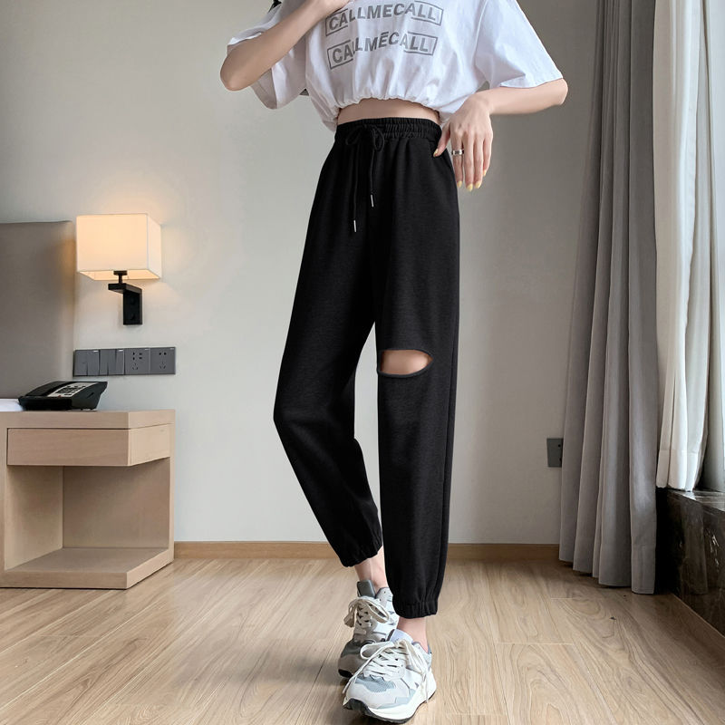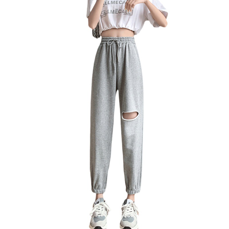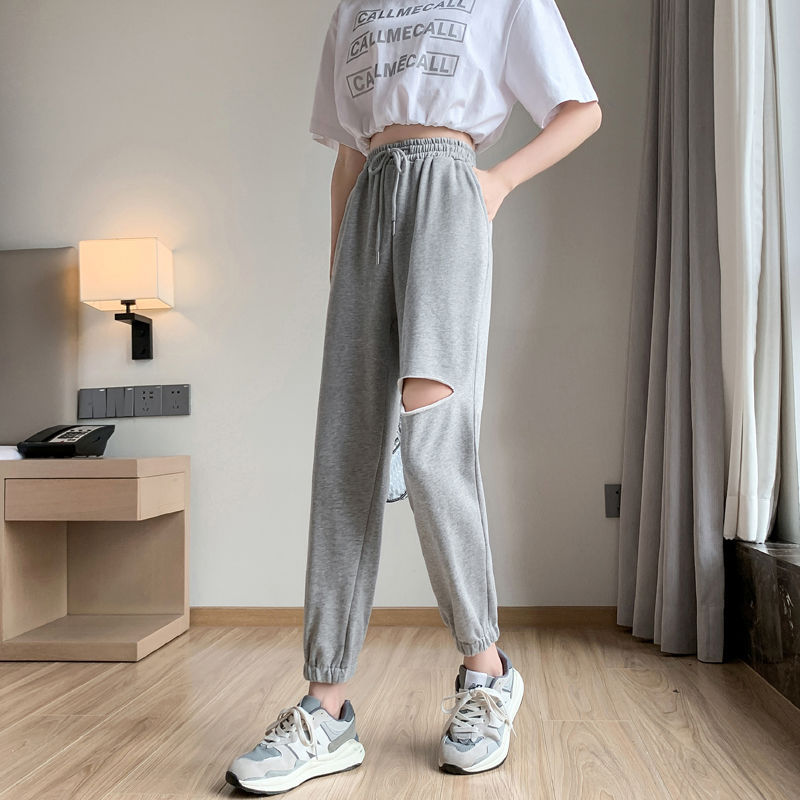 | nameOriginal | Ripped Sports Pants Women's Small 2024 Summer Thin New High Waist Loose Grey Slim Casual Pants |