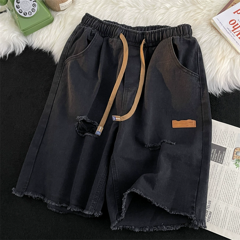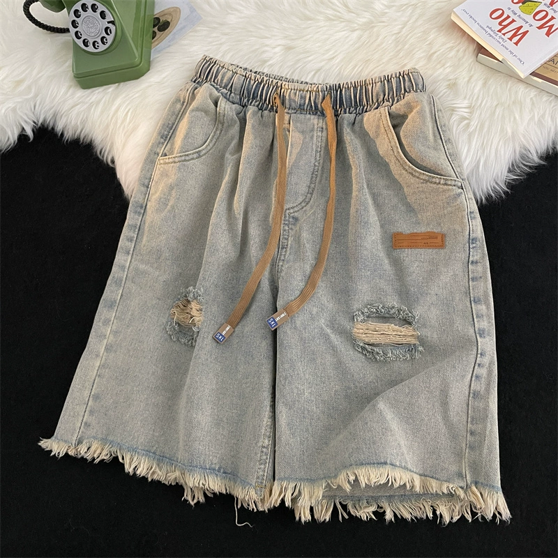 Ripped washed summer design raw edge denim shorts