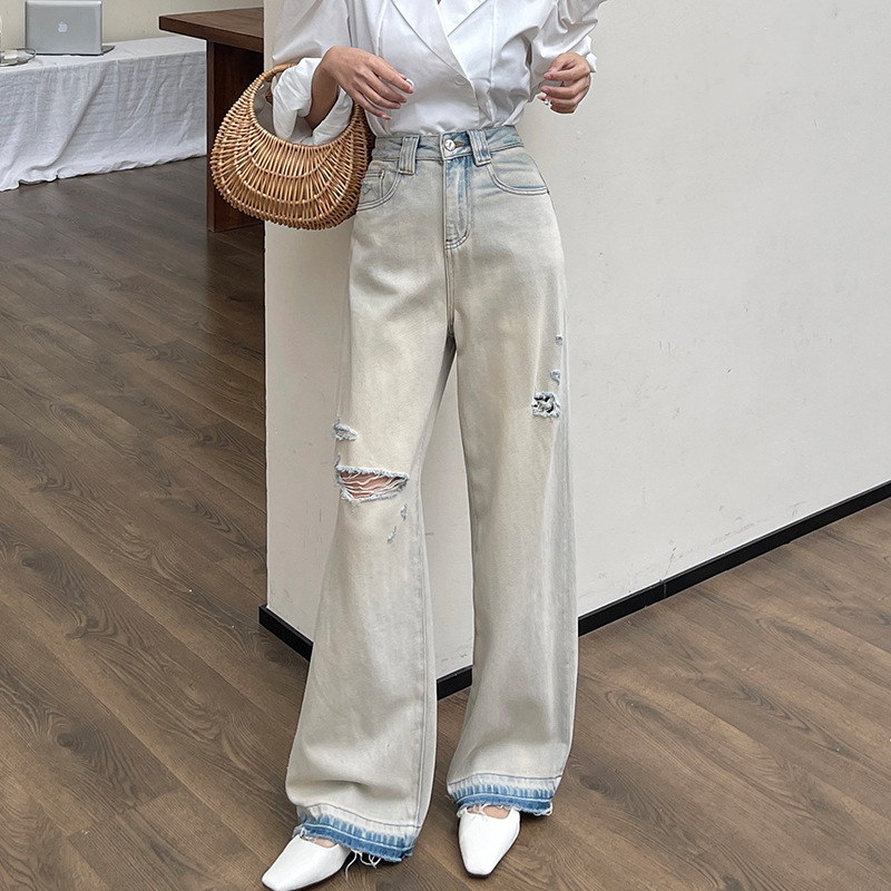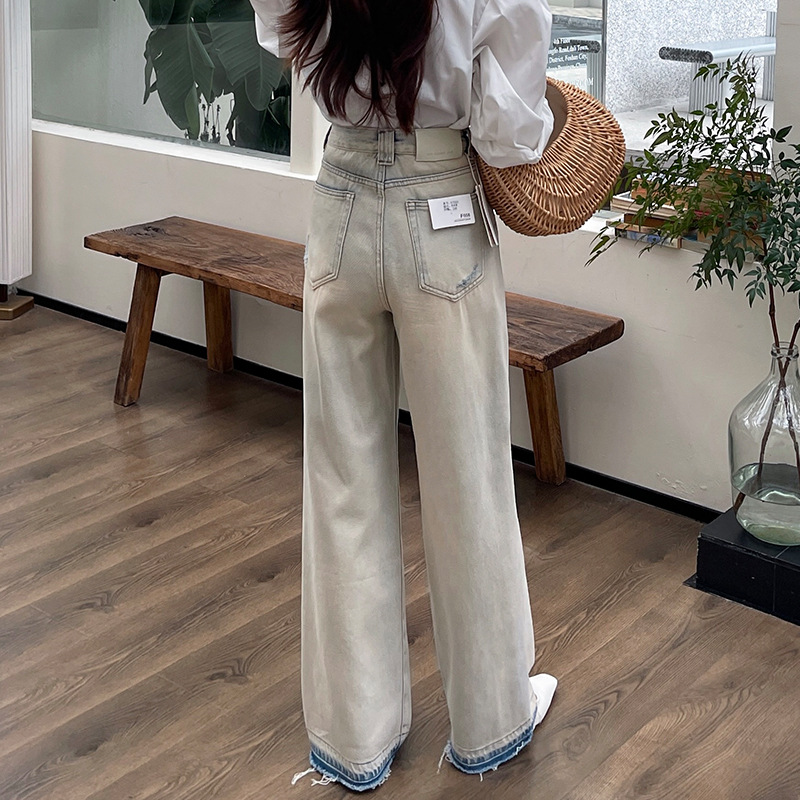 | nameOriginal | Ripped Wide-leg Jeans Women's 2024 Autumn New European and American Old-fashioned Straight Loose Fur-edged Lighting Pants |