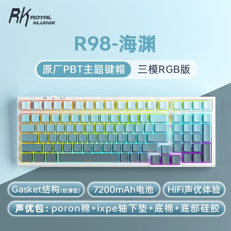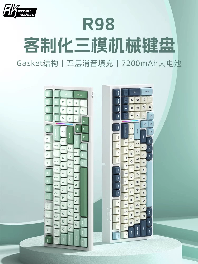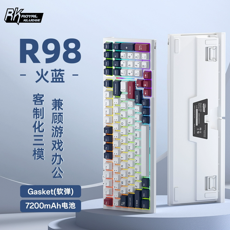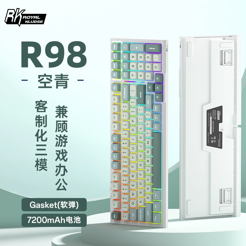 | nameOriginal | RK R98 wireless mechanical keyboard Bluetooth three-mode hot-swappable soft elastic GASKET e-sports game misty steel shaft |