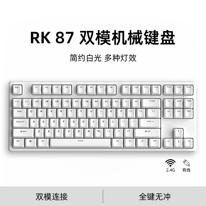 | nameOriginal | RK87 wireless mechanical keyboard 87 keys wired 2.4G dual-mode desktop notebook game office girl white light |
