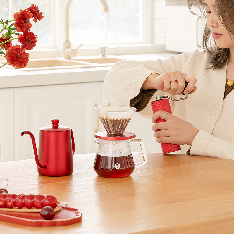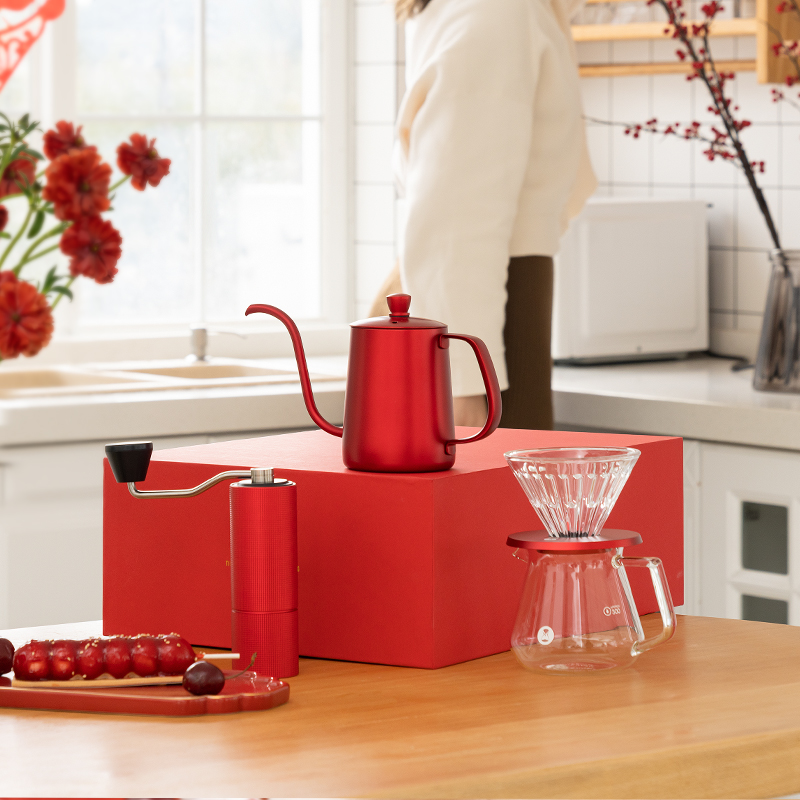 RKT4 China Red Full Set Hand Coffee Gift Box Hand Grinder Coffee Pot Appliance Holiday Gift Giving