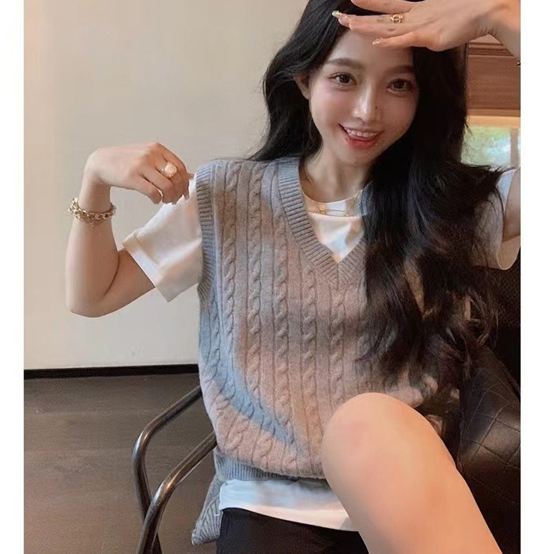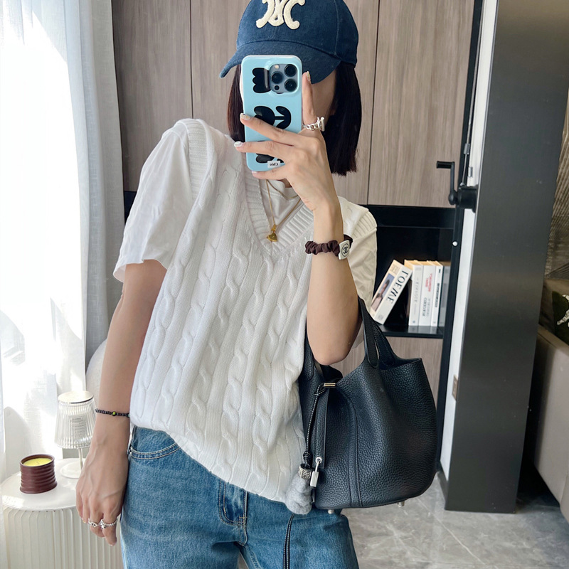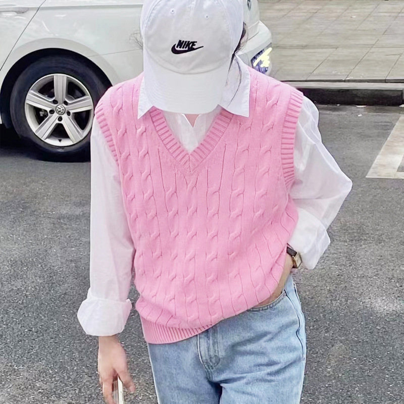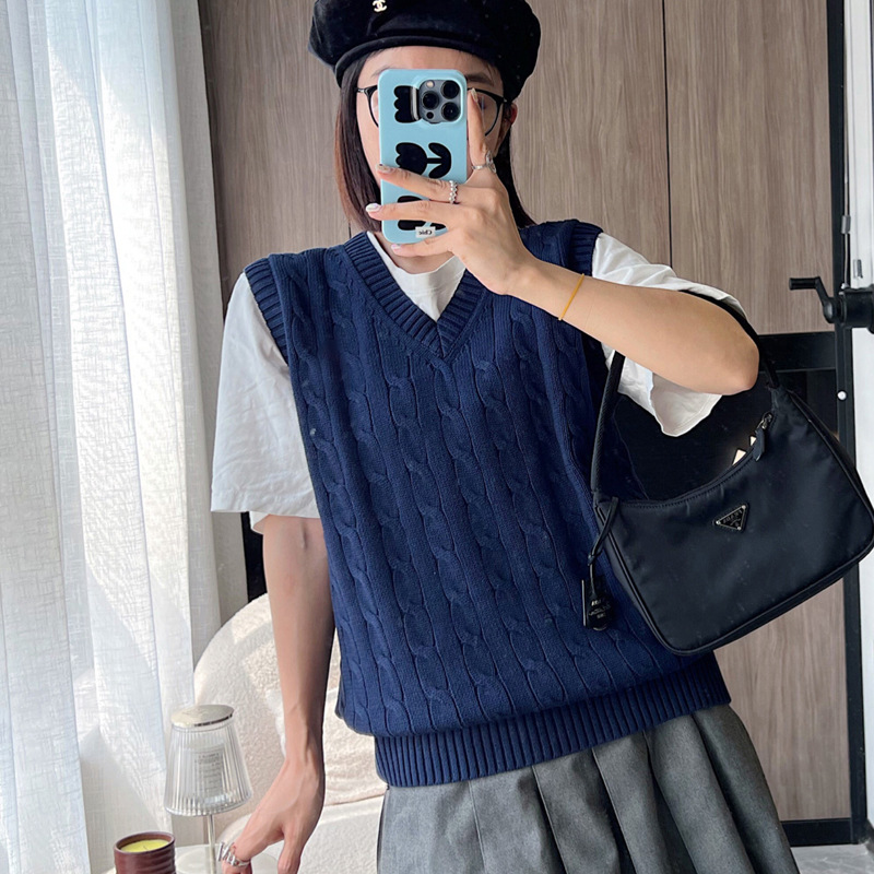 rl Ralph Embroidered Pony Mark V-neck Twist Knitted Women’s Vest Short Vest Korean Women’s Sweater Top