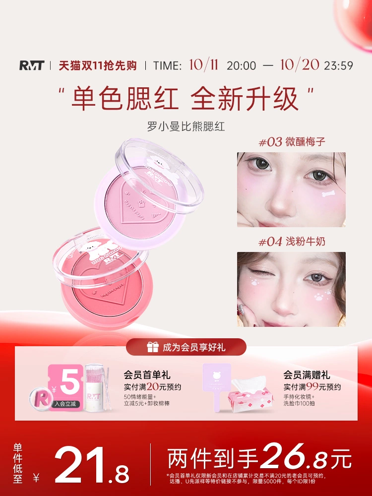 | nameOriginal | RMT Luo Xiaomanbi Bear Monochrome Blush Contouring Sunburn Matte Brightening Expanded Blush Blue Blush Purple Natural Translucent |