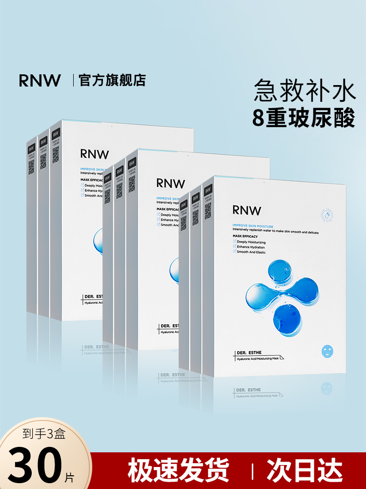 RNW facial mask for women, hydrating, hyaluronic acid, fast, deep and intensive hydration, 3 boxes, white official flagship store for students