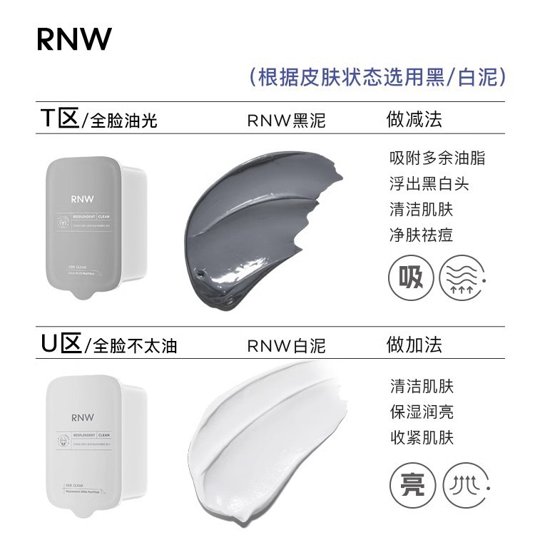 | nameOriginal | RNW Two-color Blackhead-removing Mud Mask Cleansing Pore Hydrating and Moisturizing genuine goods Mask Official Flagship for Men and Women |
